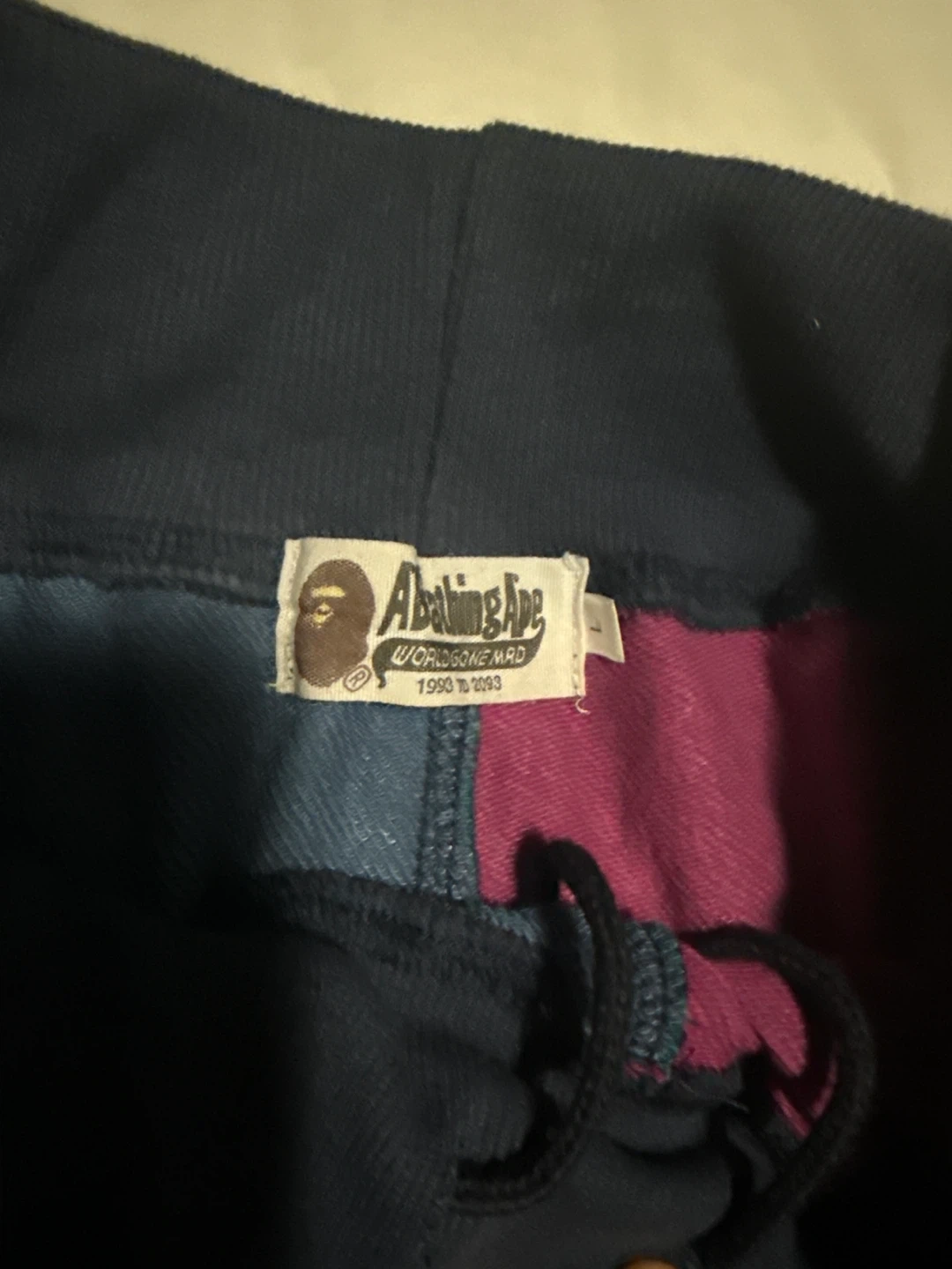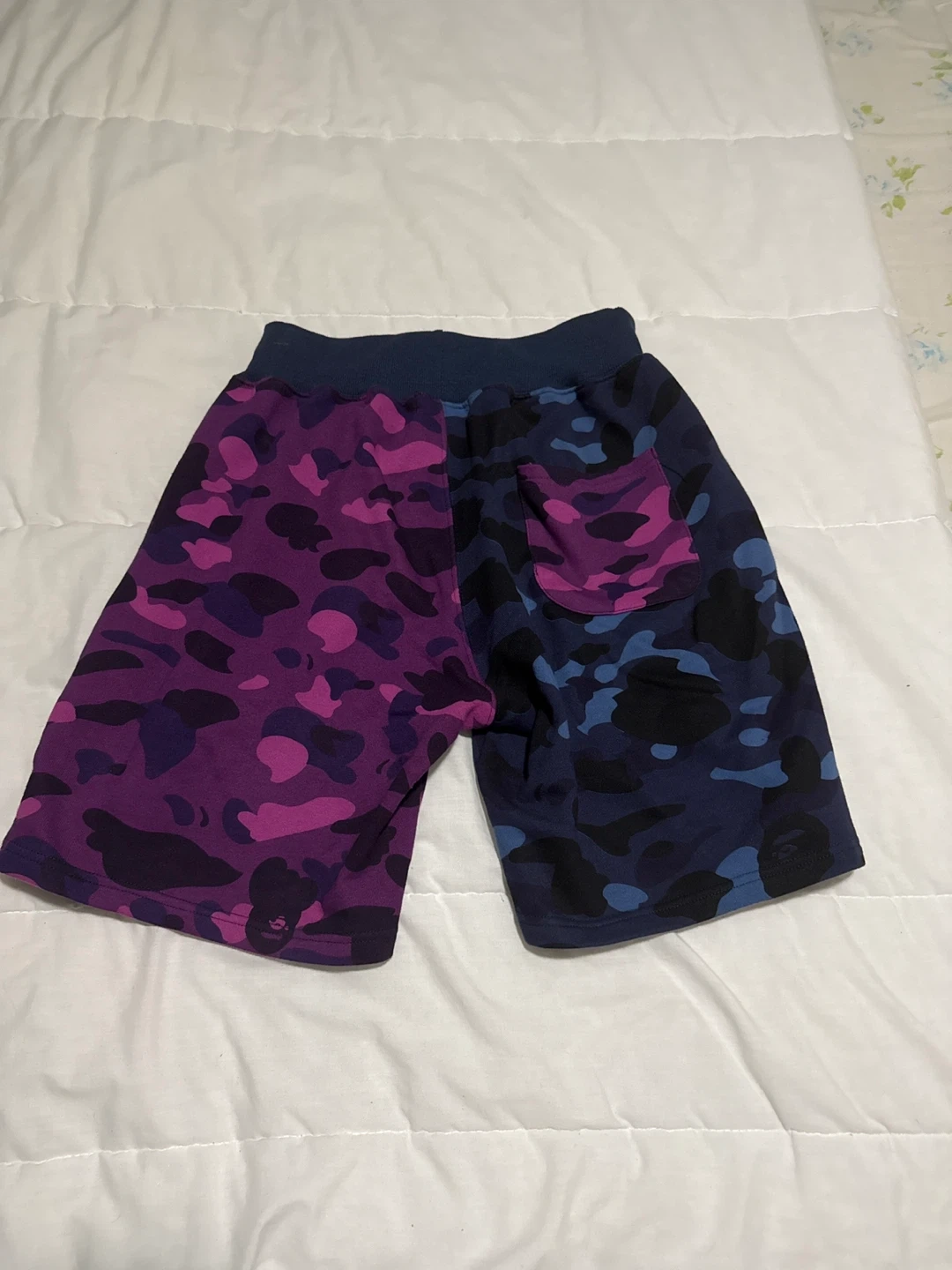 Selling a pair of A Bathing Ape (BAPE) shark shorts in size L. These shorts feature a unique two-tone camouflage design with the iconic shark graphic. They're in great condition and ready for a new owner!