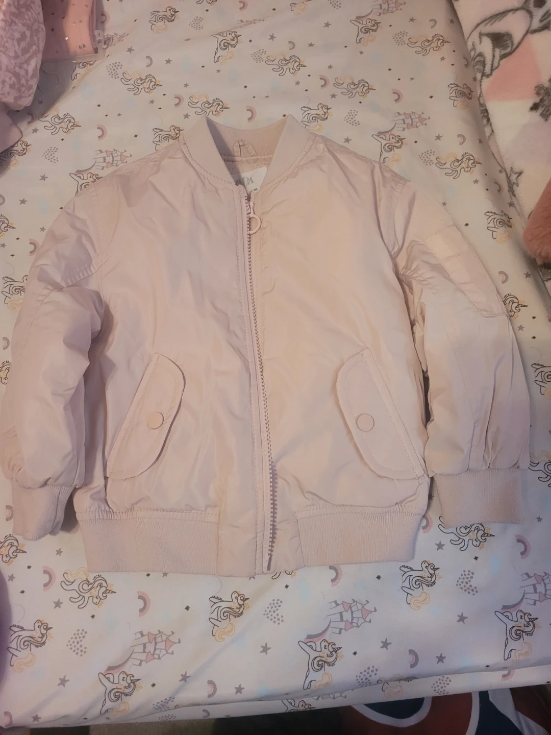Selling a cute Zara kids bomber jacket! It's a lovely light pink colour and in great condition. The size is 2-3 years. Perfect for keeping your little one warm and stylish!