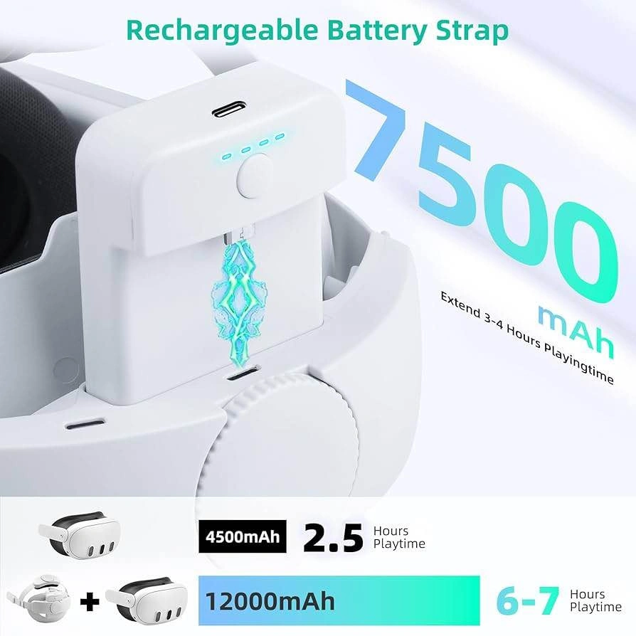 Battery Head Strap 7500mAh for Meta Quest 3S/3/Quest 2,Double Knobs Adjustable Elite Strap Replacement,VR Accessories Strap Enhanced Support & Comfort & Reduce Pressure Extend Playtime