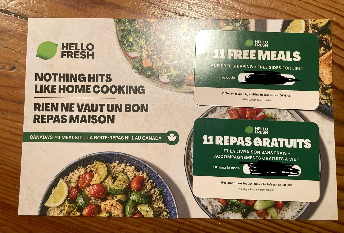 i have one code left for 11 free meals from hello fresh. if you are interested in trying hello fresh, i can message you the code to use on their website.