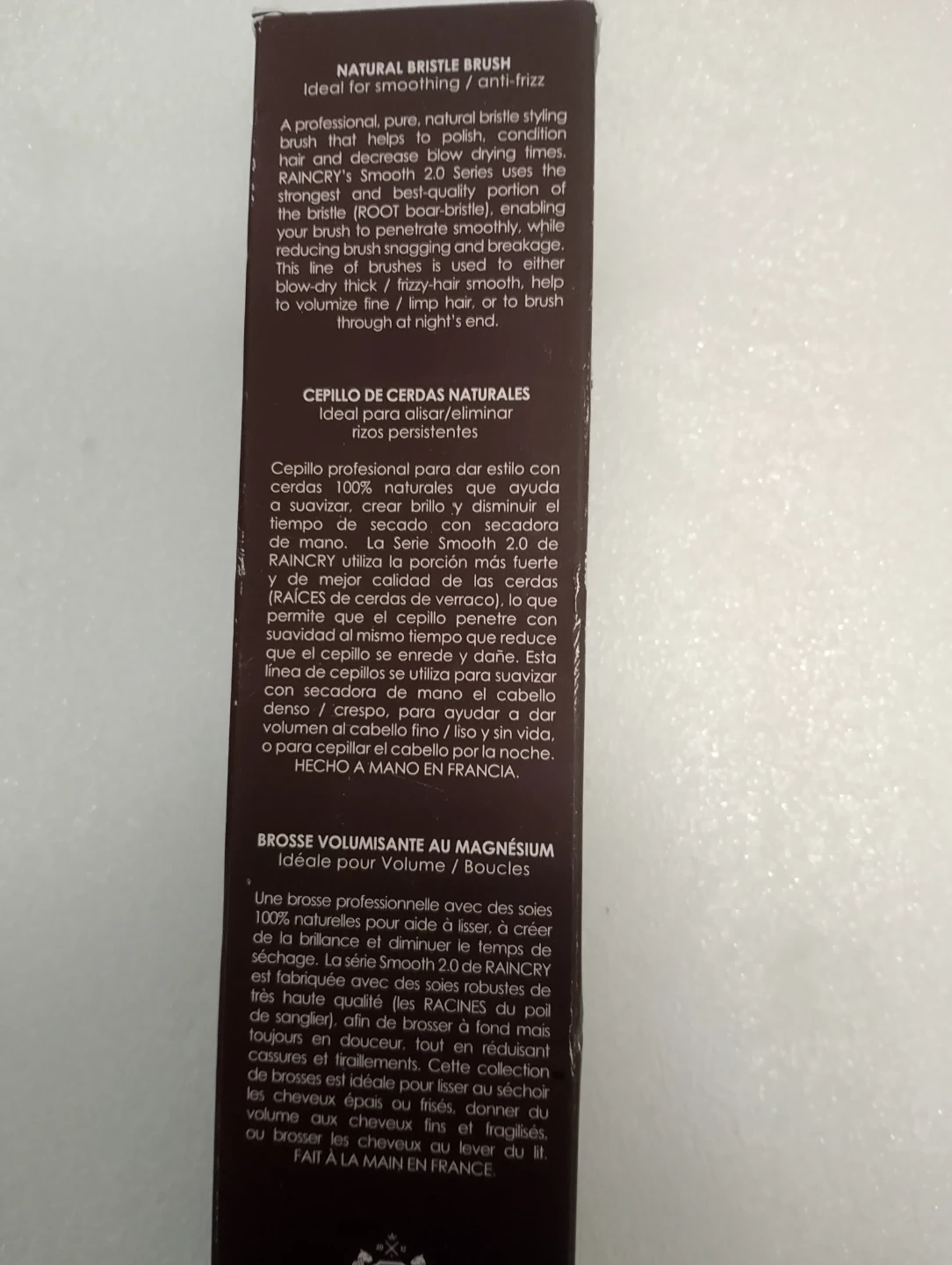Selling a Raincry Smooth 2.0 natural bristle brush in medium size. It's ideal for smoothing and anti-frizz. Perfect for polishing, conditioning hair, and decreasing drying time. Handcrafted in France