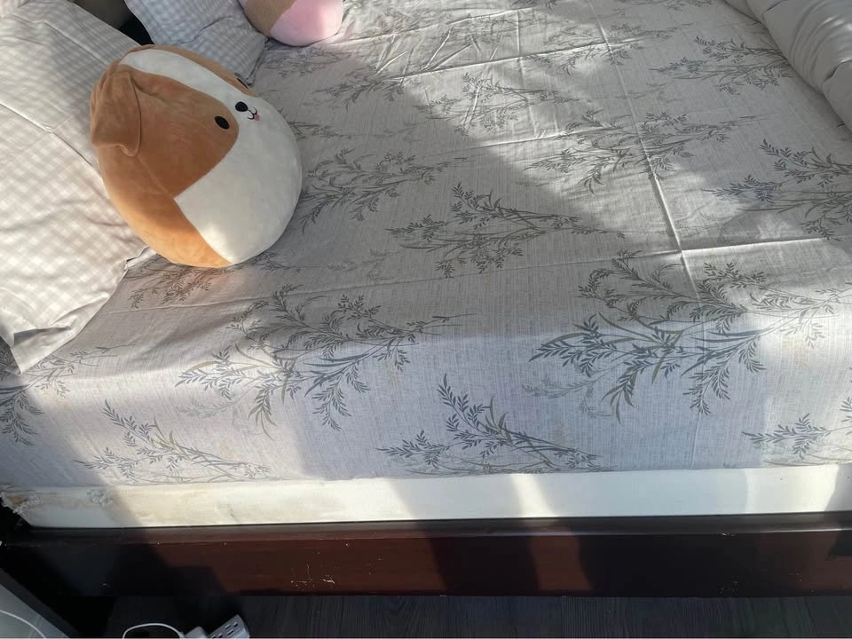 Selling a custom-made bed frame crafted from high-quality solid wood, along with an IKEA bed box.