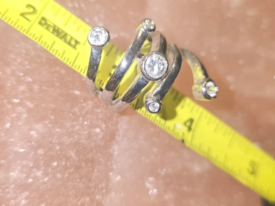 Here's a unique stainless spiral ring! It features gemstones along the spiral design. A stylish and eye-catching piece to add to your collection