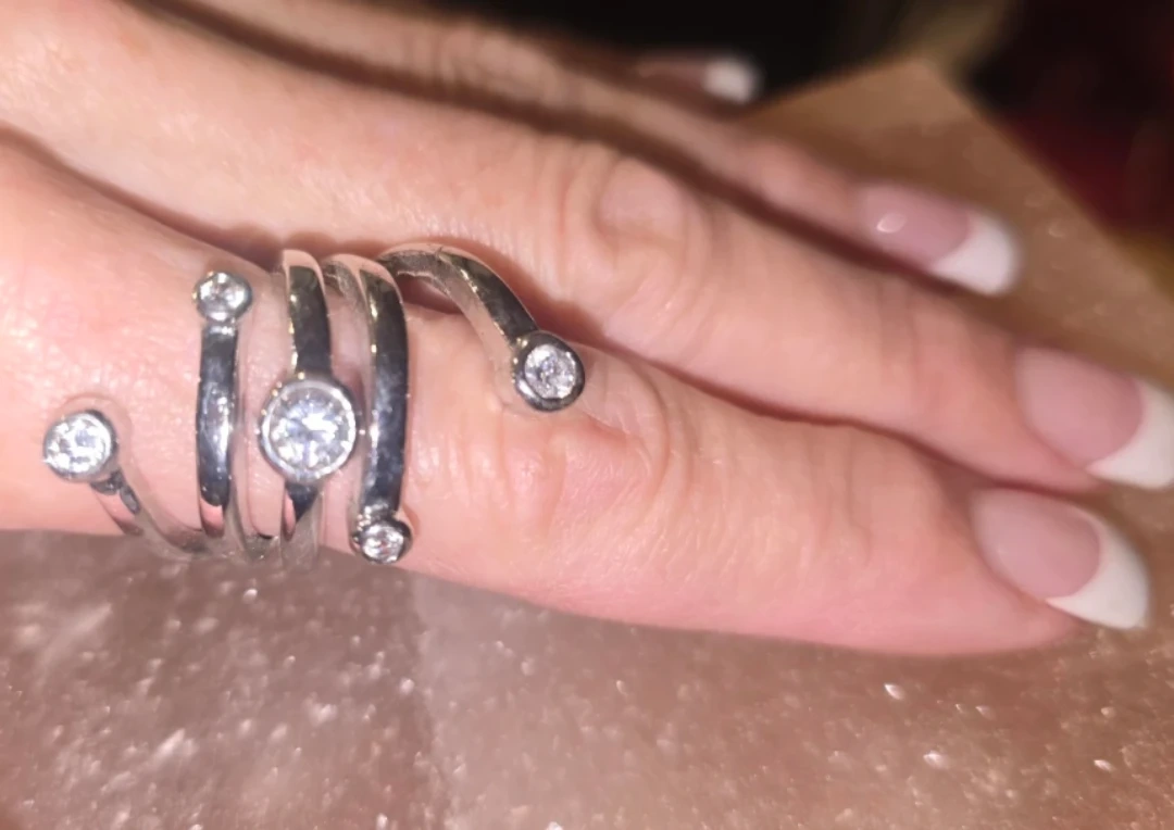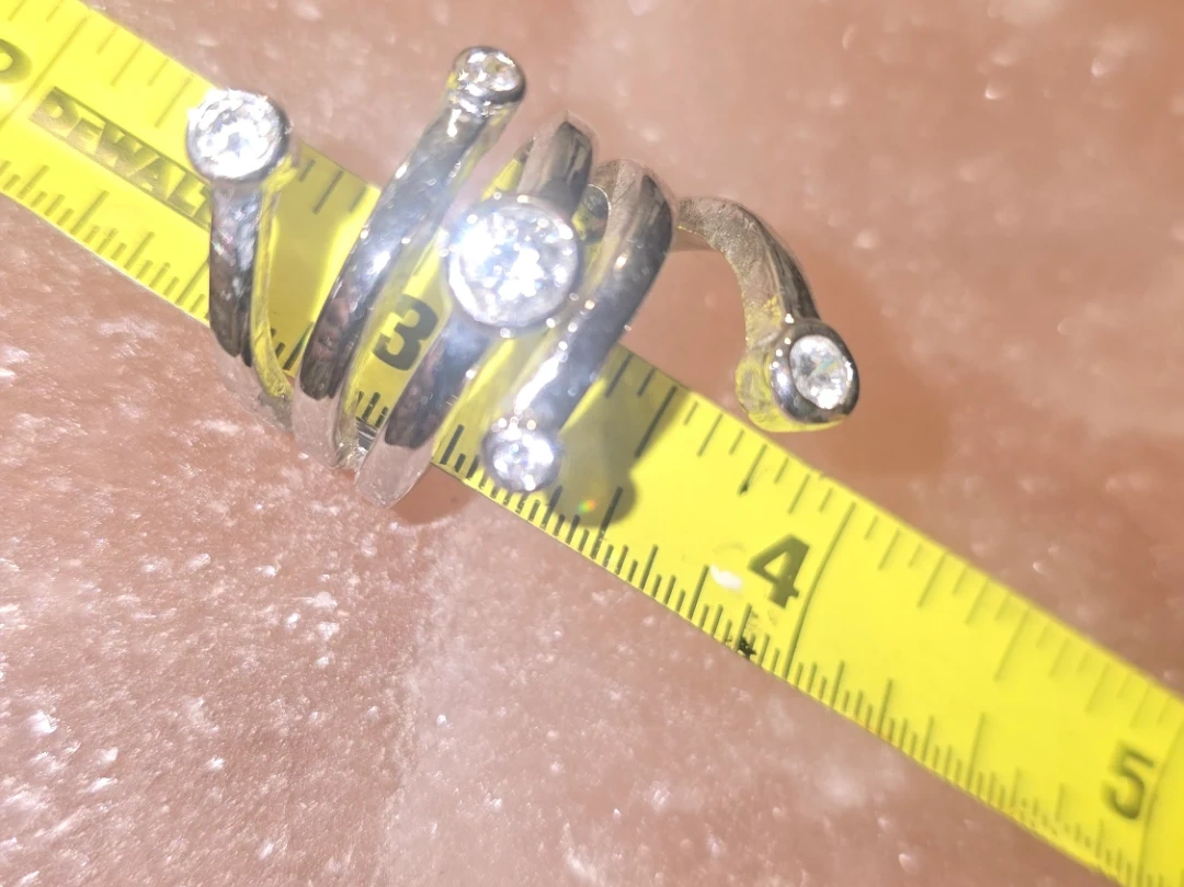 Here's a unique stainless spiral ring! It features gemstones along the spiral design. A stylish and eye-catching piece to add to your collection