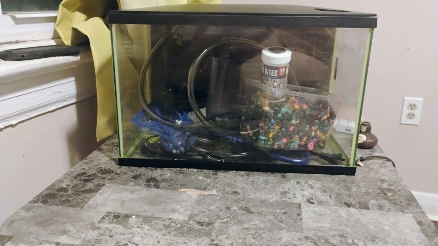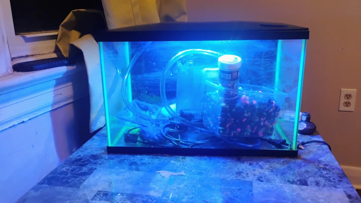 Selling a used aquarium that comes with a variety of accessories! It includes a filter, tubing, and some colourful gravel. Also comes with Tetra Tropical Fish Food Bites. Has both black light and regular lights options. No leaks.