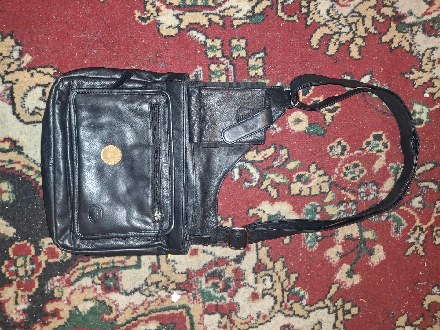 This is a stylish black leather shoulder bag. It has multiple compartments and a convenient adjustable strap. It's in great condition and ready for everyday use!
