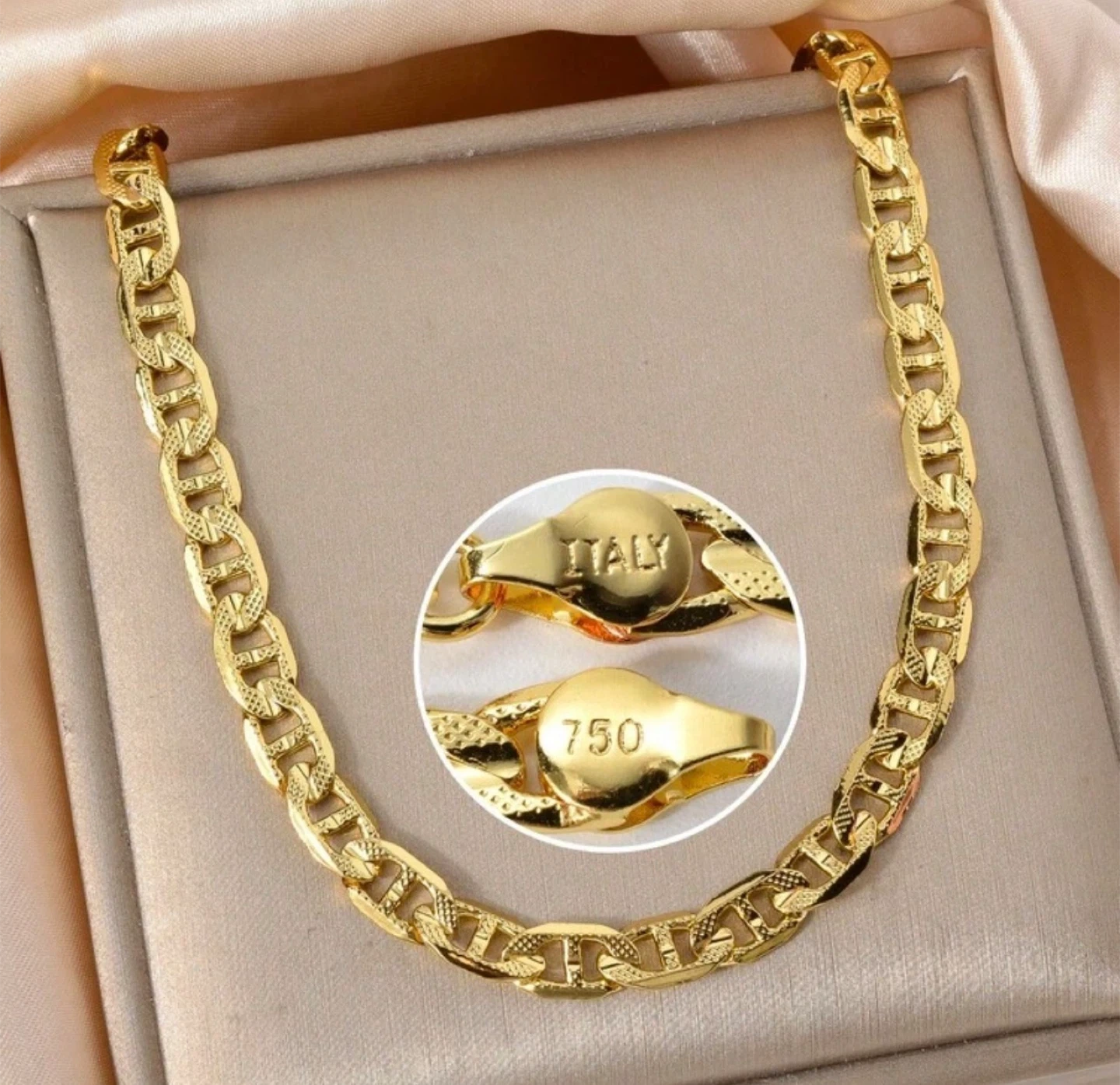 Selling a beautiful gold - plated chain necklace marked with 'Italy' and '750'. It's a stylish piece to add to your collection