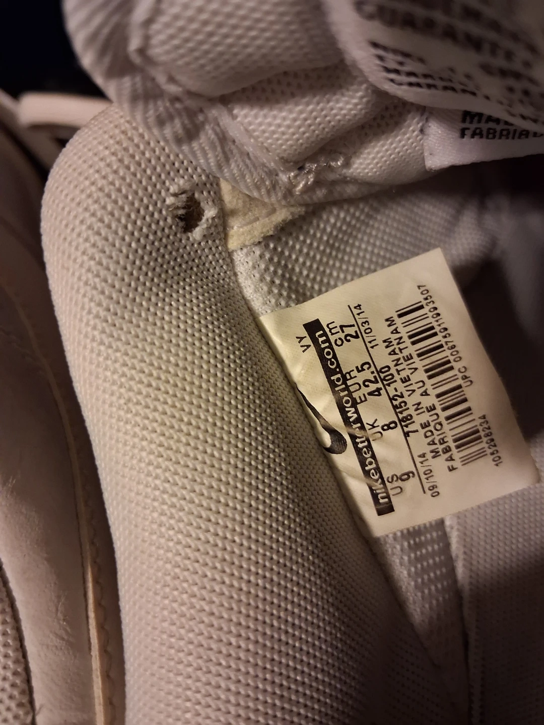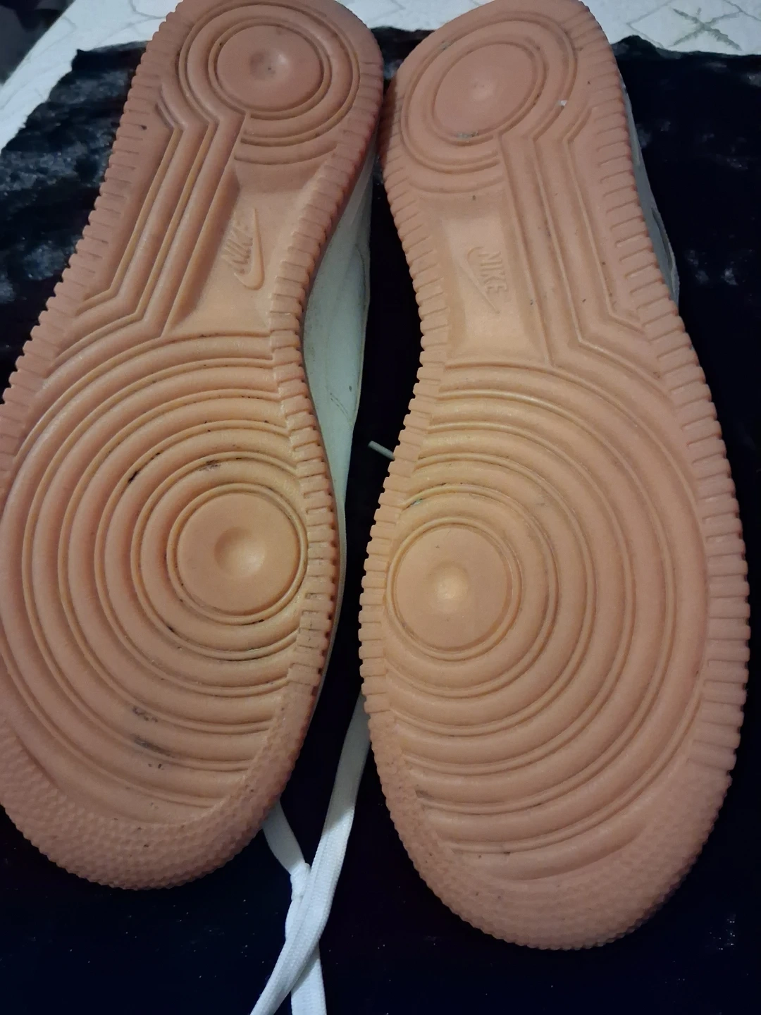 Selling a pair of Nike Air Force 1s in white, size US 9. They show some signs of wear, but still have lots of life left!