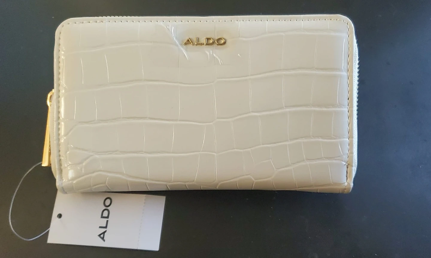 I'm selling a brand new Aldo wallet! It has a croc-effect texture and a zip-around closure. Perfect for keeping your cards and cash organized