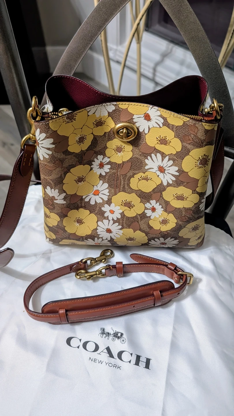 This Coach Willow shoulder bag features a beautiful floral print! Comes with shoulder and a cross body strap, as pictured. Dust bag included. The original tag shows CAD $495. Brand new with tags. Ready for spring and a new owner!