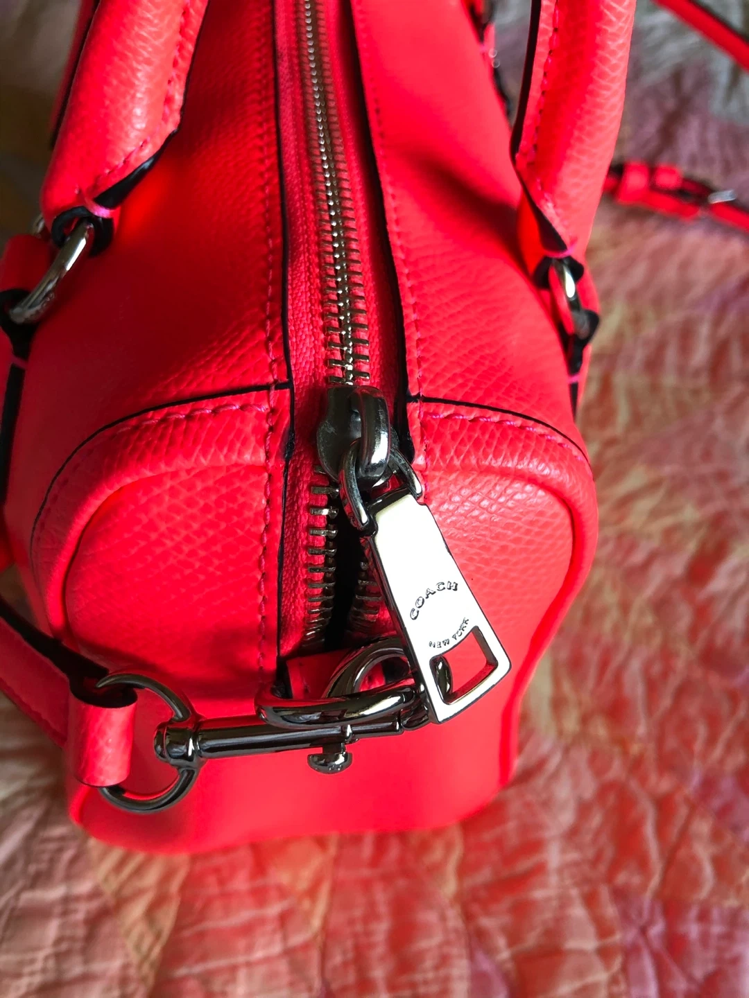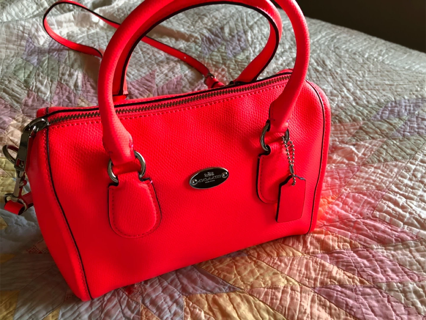 Brighten up your outfit with this fun neon pink Coach satchel! It's in great condition and ready for a new adventure. Perfect for adding a pop of colour to your day