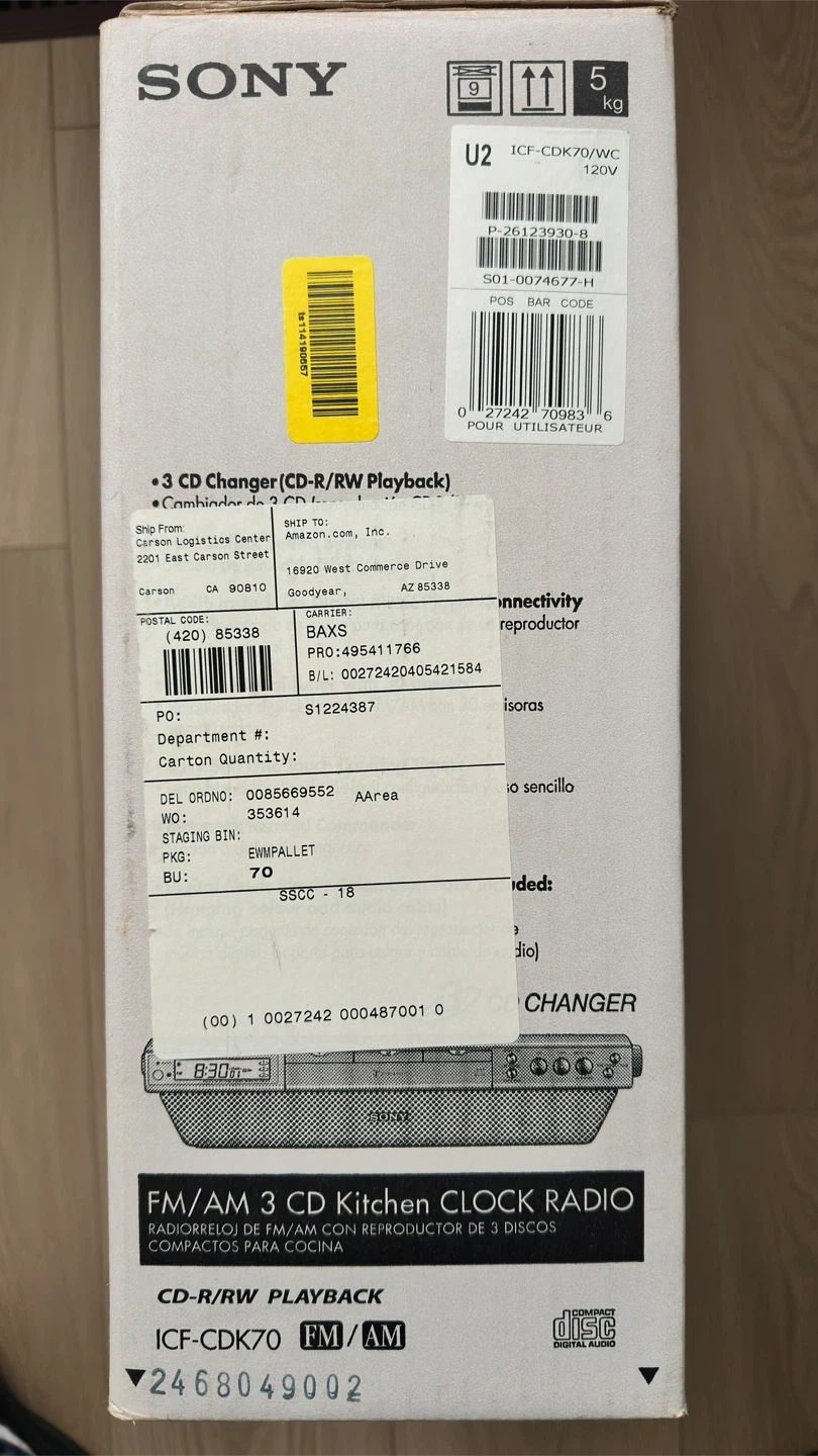 Selling a Sony ICF-CDK70 FM/AM 3 CD Kitchen Clock Radio!