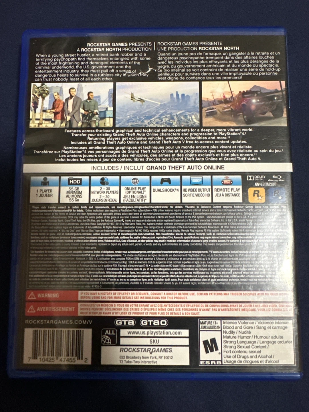 Buy & SellGrand Theft Auto V (GTA 5) - PS4Grand Theft Auto V (GTA 5) - PS4$11Selling Grand Theft Auto V (GTA 5) for PlayStation 4 (PS4). Enjoy hours of gameplay with this popular title!ConditionGoodWHERE TO MEETCheck LocationView MapSELLEREstebanCranston100 reviews3 chats·1 favorites·32 viewsSEND CHAT TO SELLERHi Esteban! I’m interested in your listing.Hi Esteban! I’m interested in your listing.Get the Karrot app to chatSign In to chat
