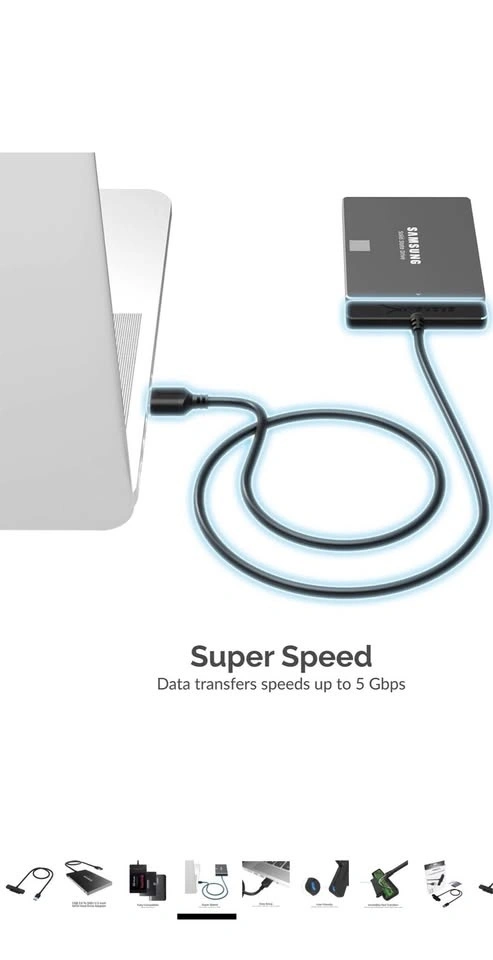 High-Speed Data Transfer with USB 3.2: Achieve transfer speeds up to 5Gbps using our SATA to USB cable, perfect for quick file transfers and backups. This SSD cable is compatible with USB 3.2 and 2.0, providing flexibility and speed.