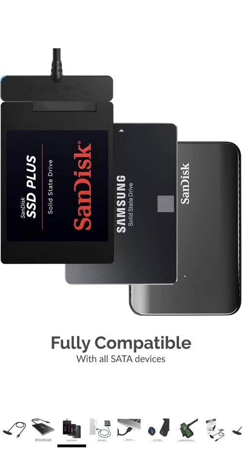 Wide Compatibility and Usage: The SATA USB adapter is backward compatible with USB 2.0 and 1.1, making it suitable for a range of devices. Whether you need a USB to SATA cable for data recovery, backups, or expanding storage, this adapter serves all purposes, including connecting to SSD adapters.