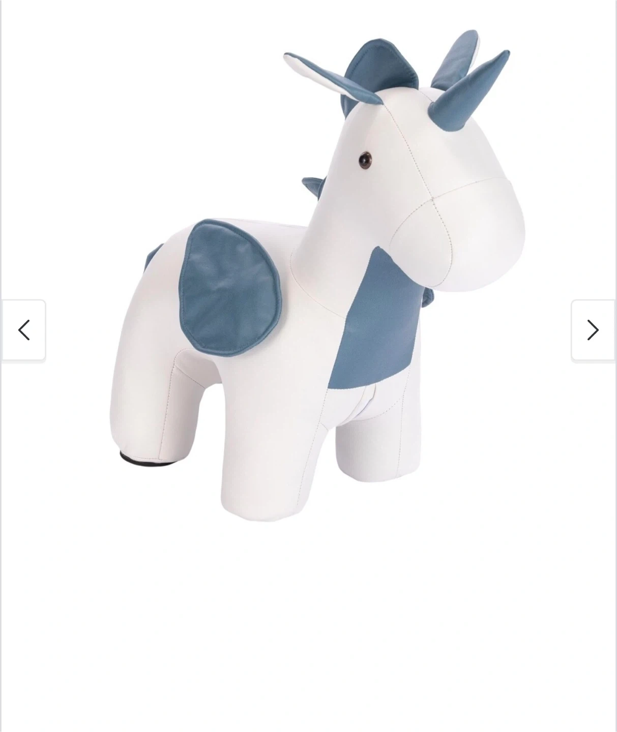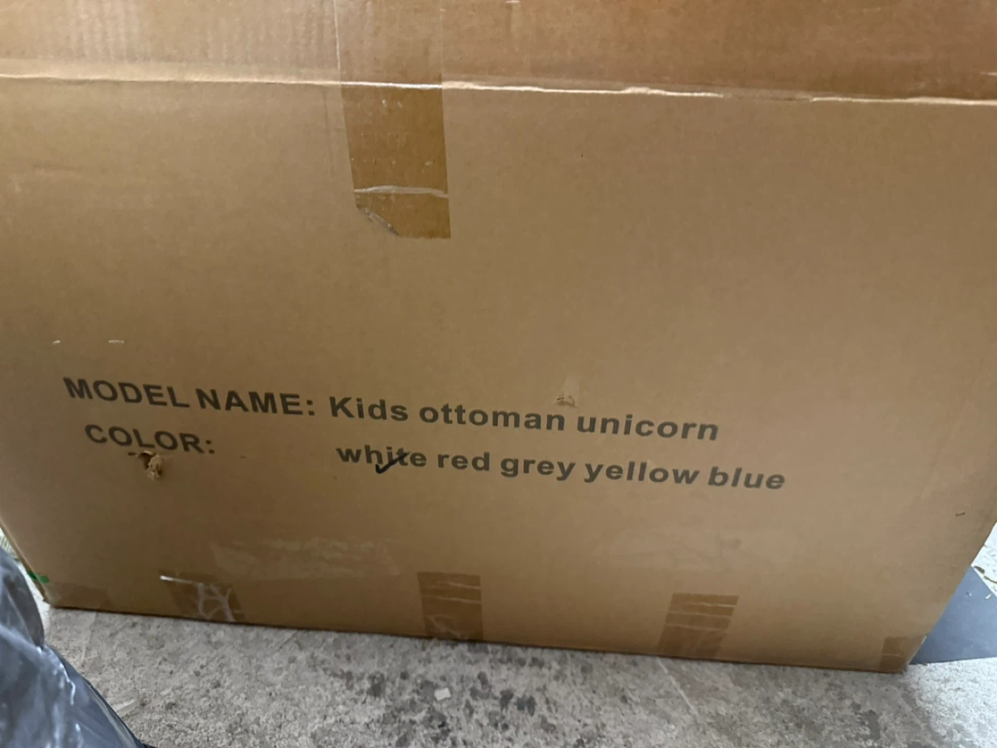 This adorable unicorn ottoman is brand new and still in its box! It features a white body with blue accents and is made of soft material, perfect for a child's room or playroom. The ottoman measures approximately 27.56" in height, 29.92" in length, and 15.6" in width. It's a cute and functional piece of decor!