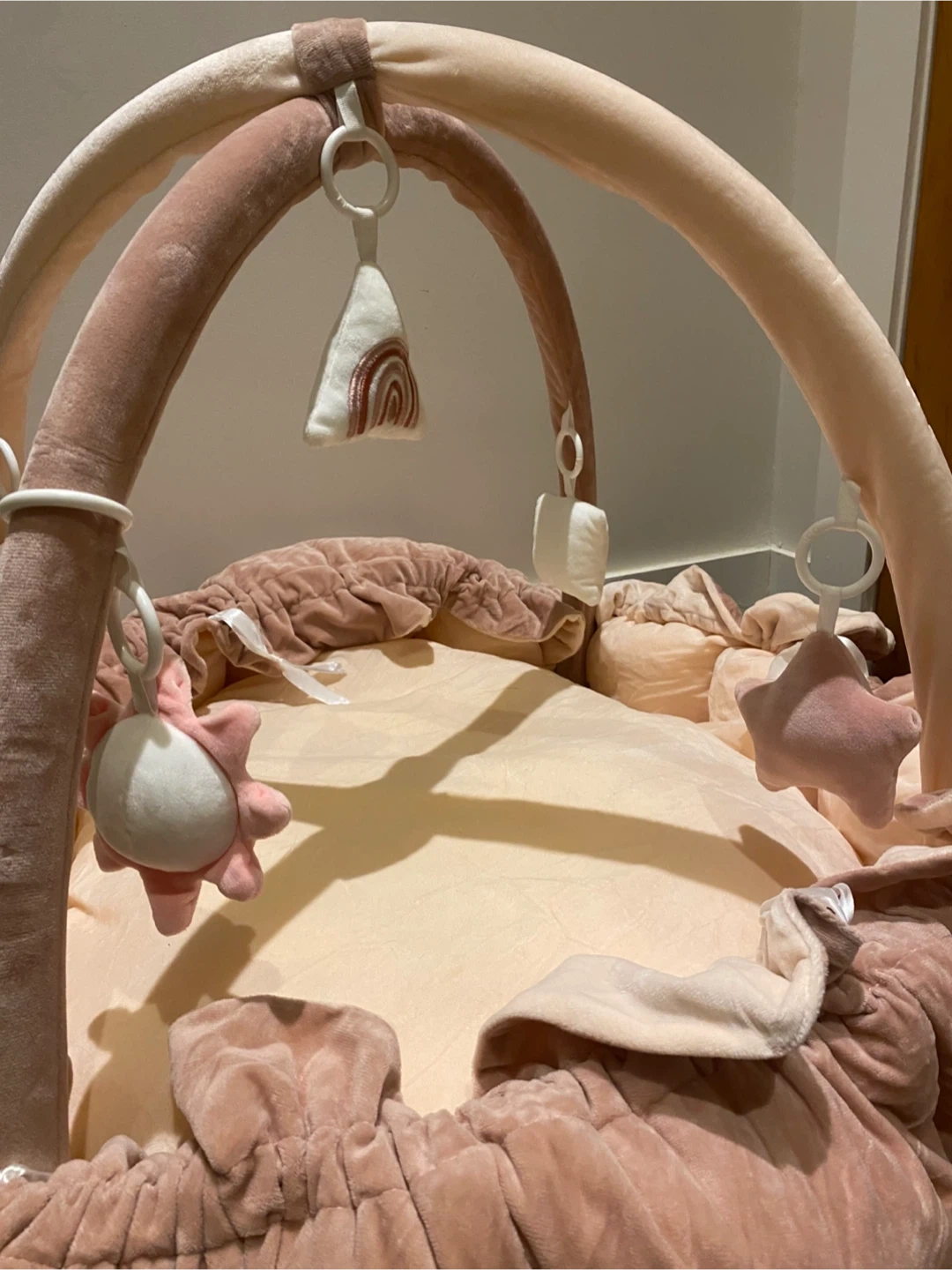 Selling a very gently used baby activity gym in a lovely circular pink colour! It's in great condition and perfect for tummy time and playtime. The gym includes soft toys to encourage reaching and grasping, helping with your baby's development.