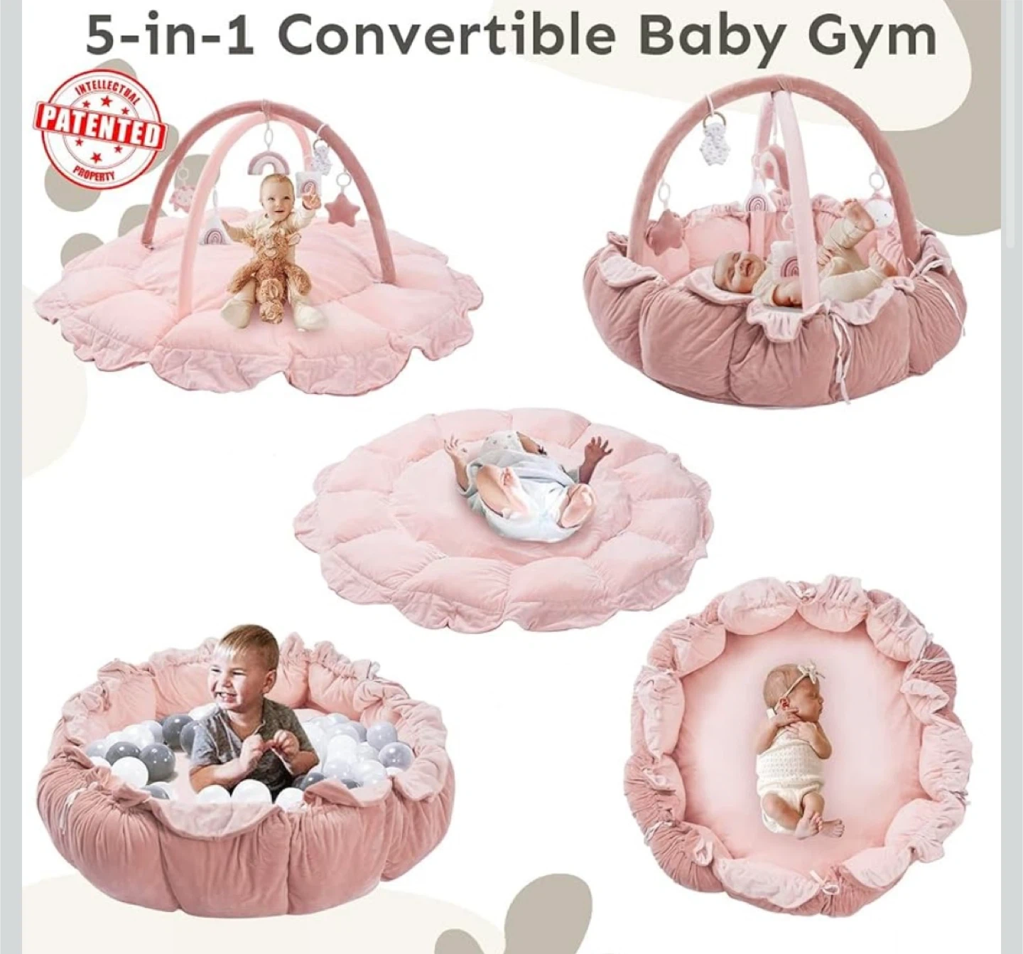 5-in-1 Thick & Plush Play Gym, Convertible Baby Play Mat