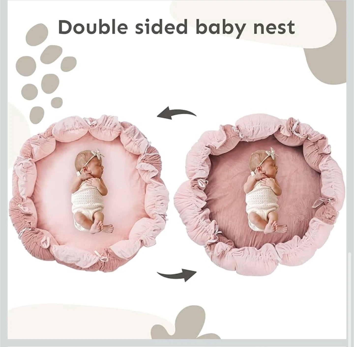 Give your baby the gift of premium comfort with this extra-large 47" play mat, featuring ultra-soft cotton fabric that feels like a gentle hug. The dual-sided design offers versatility - choose the light-colored side for cozy tummy time or flip to the stain-resistant dark side when messy play begins. This mat makes cleanup a breeze while its smooth rounded edges keep your little explorer completely safe during playtime.
