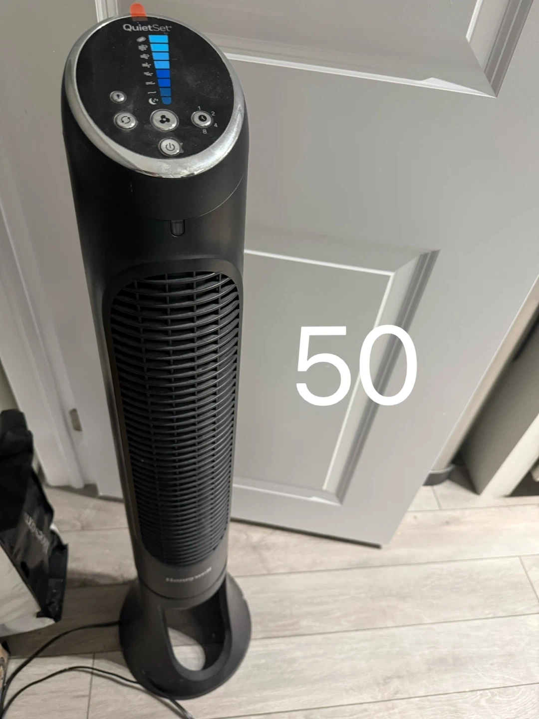 Selling a Honeywell QuietSet tower fan in black! It has multiple speed settings and a QuietSet feature for peaceful operation.