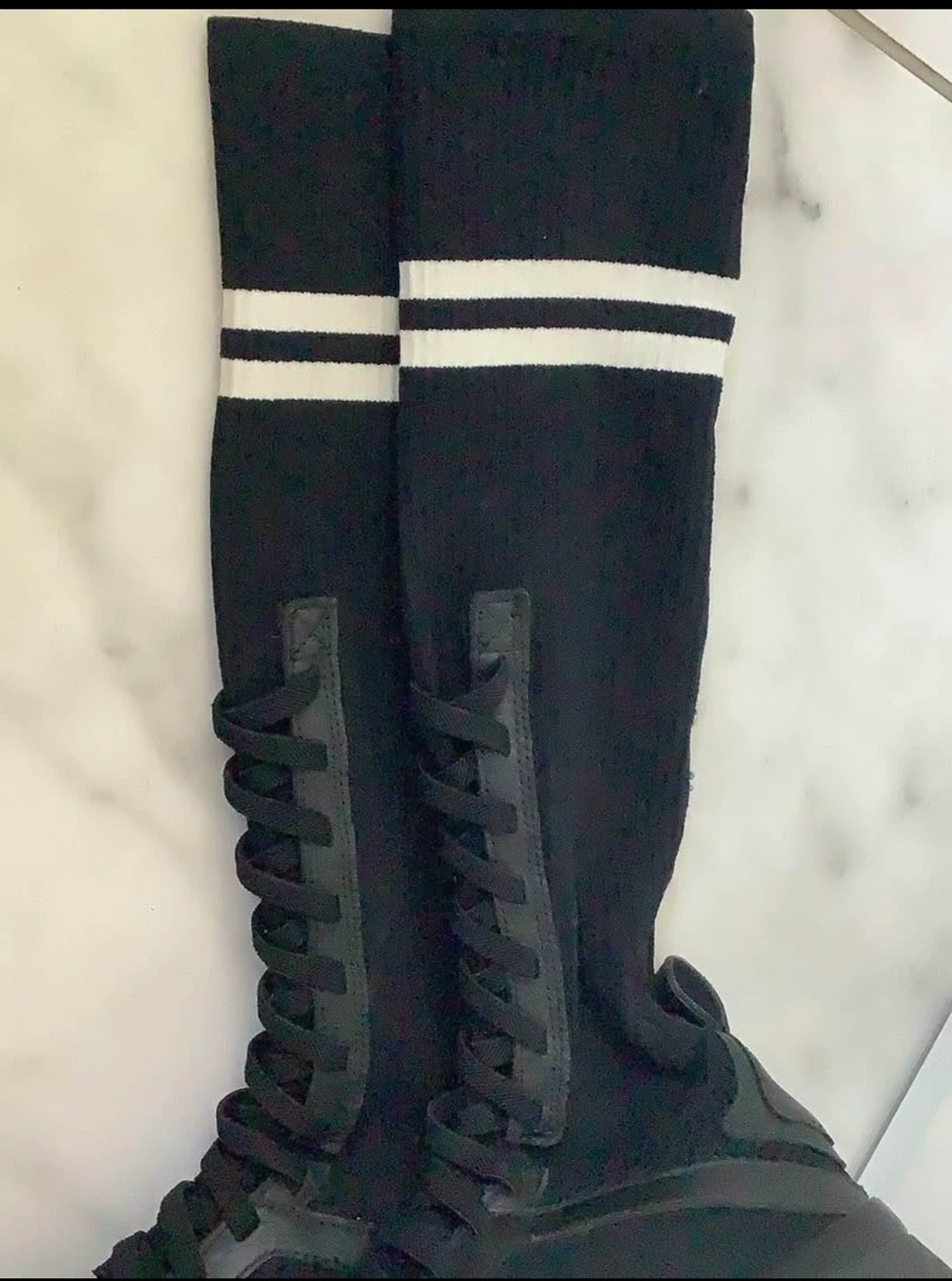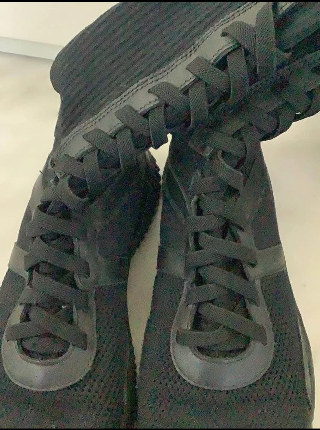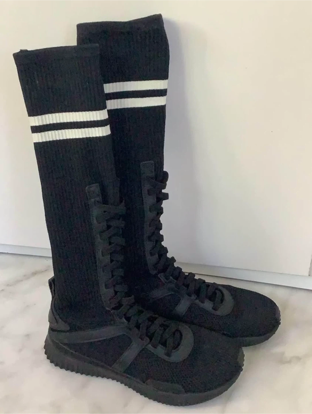 These are a pair of Puma Deva Boot Sock shoes in black. They feature a sock-like upper and lace-up closure for a secure fit. The design includes the classic Puma logo.