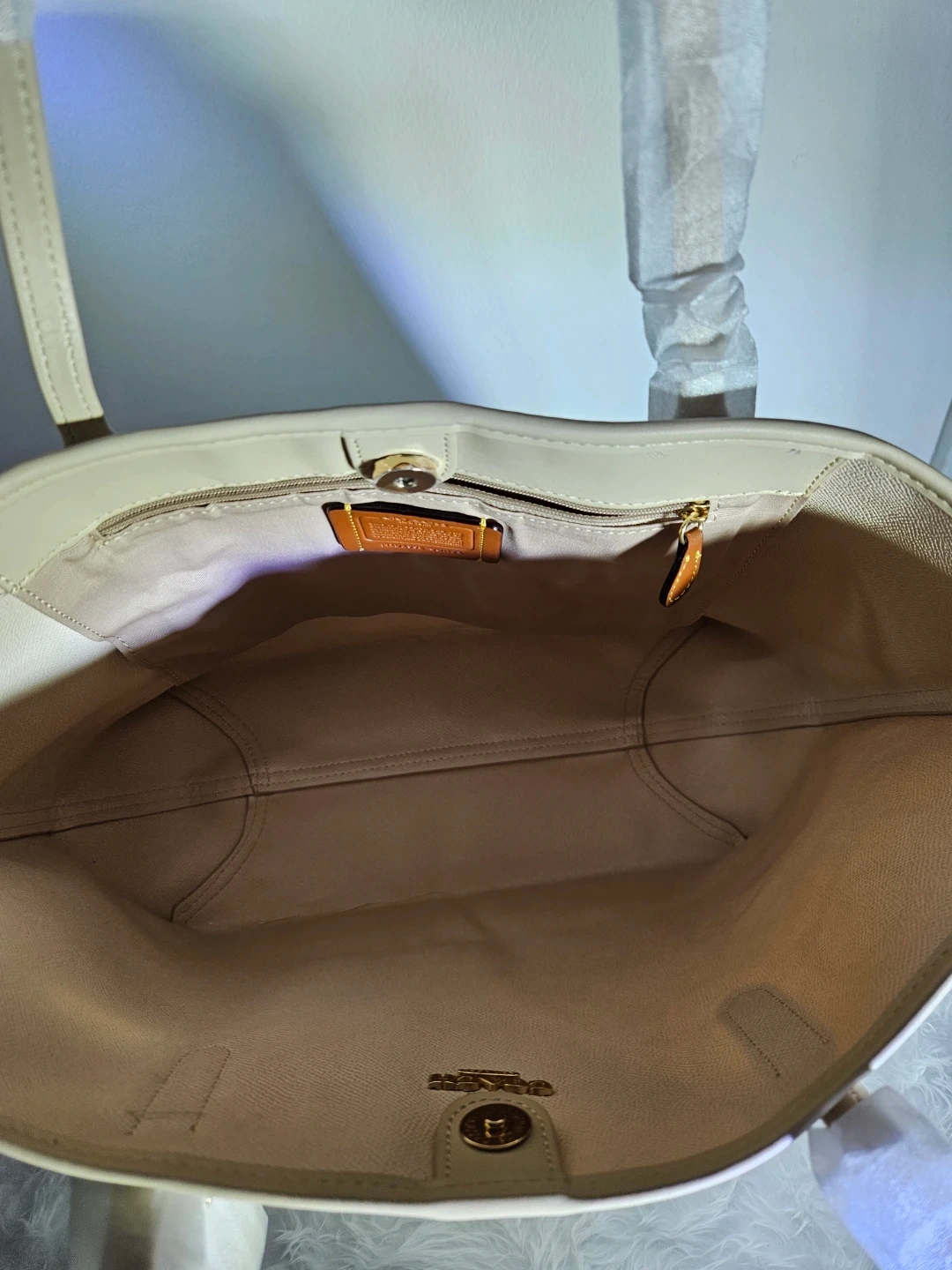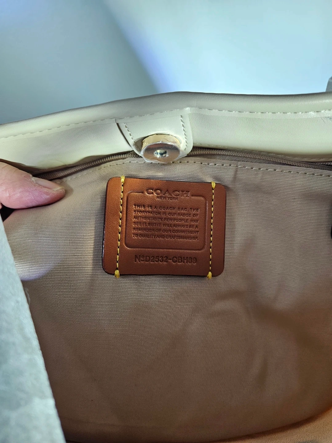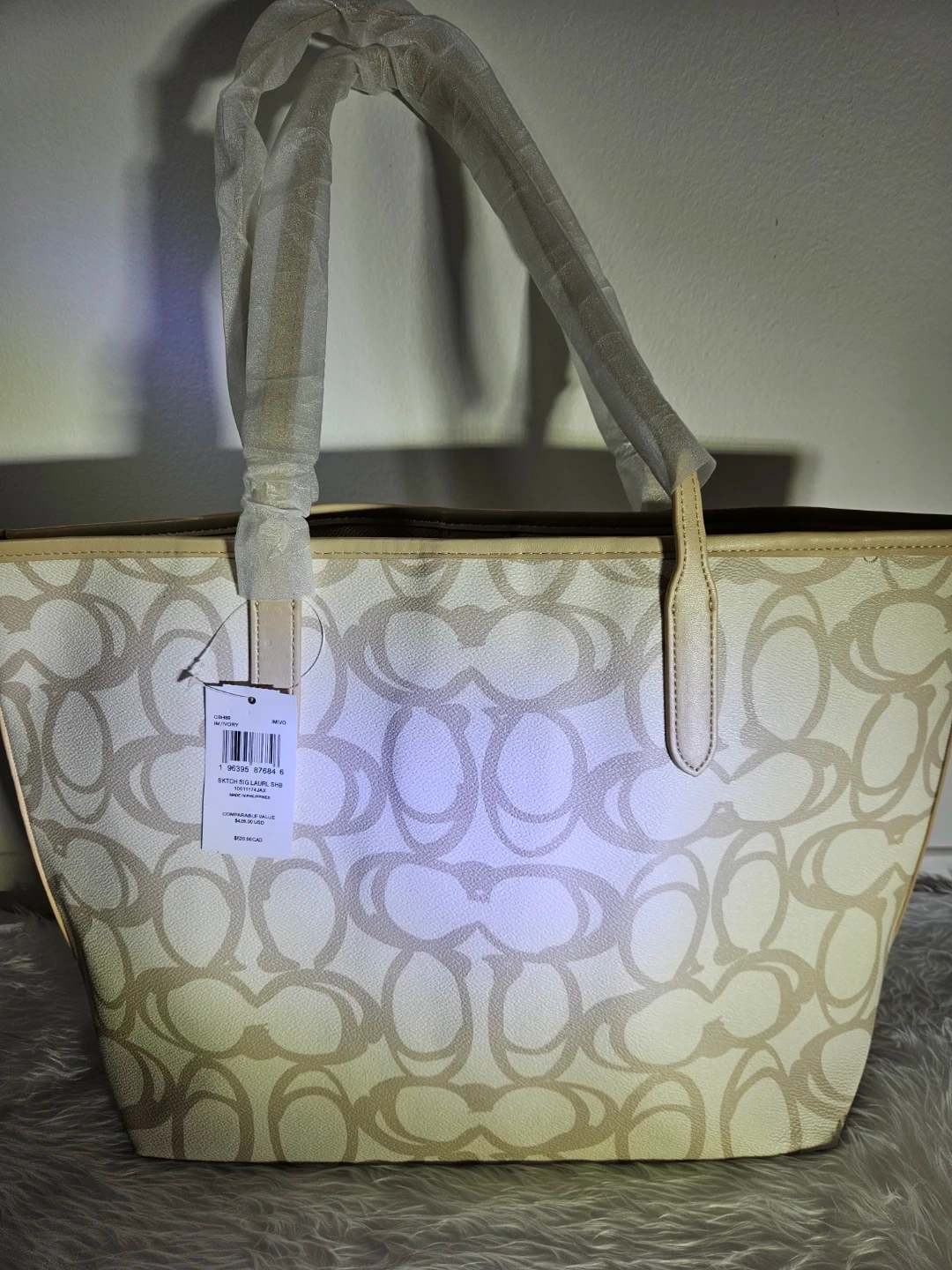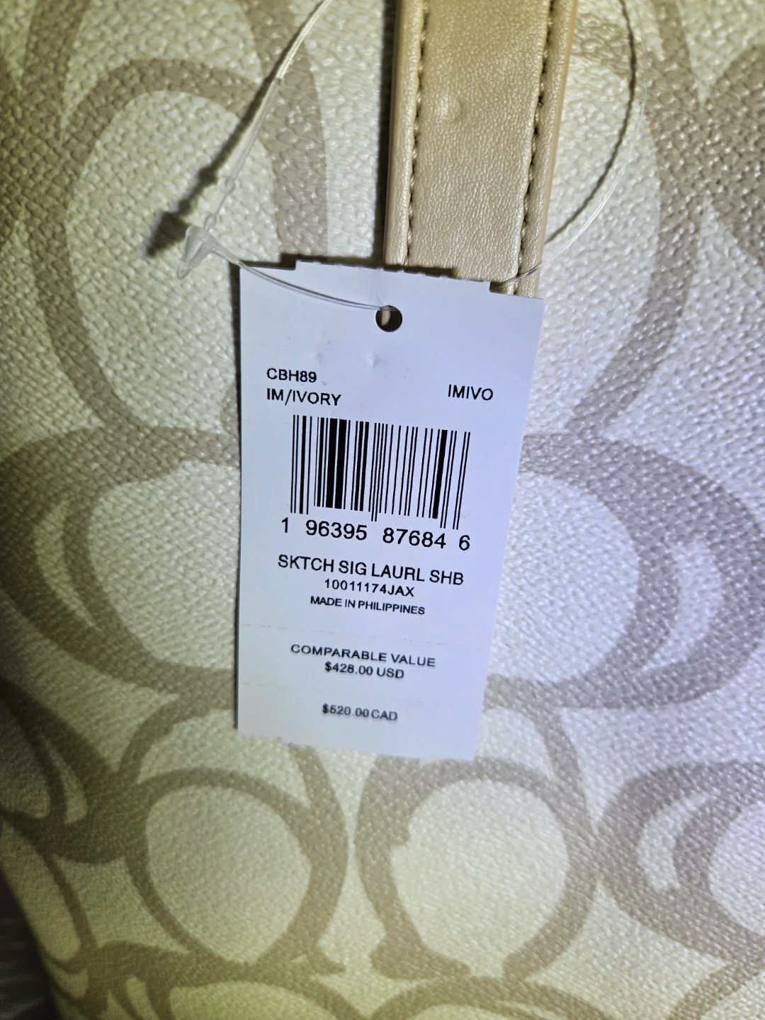 This is a Coach Sktech Sig Laurl Shb tote bag in ivory! The tag shows a comparable value of $520 CAD. It's in great condition and ready for a new owner.