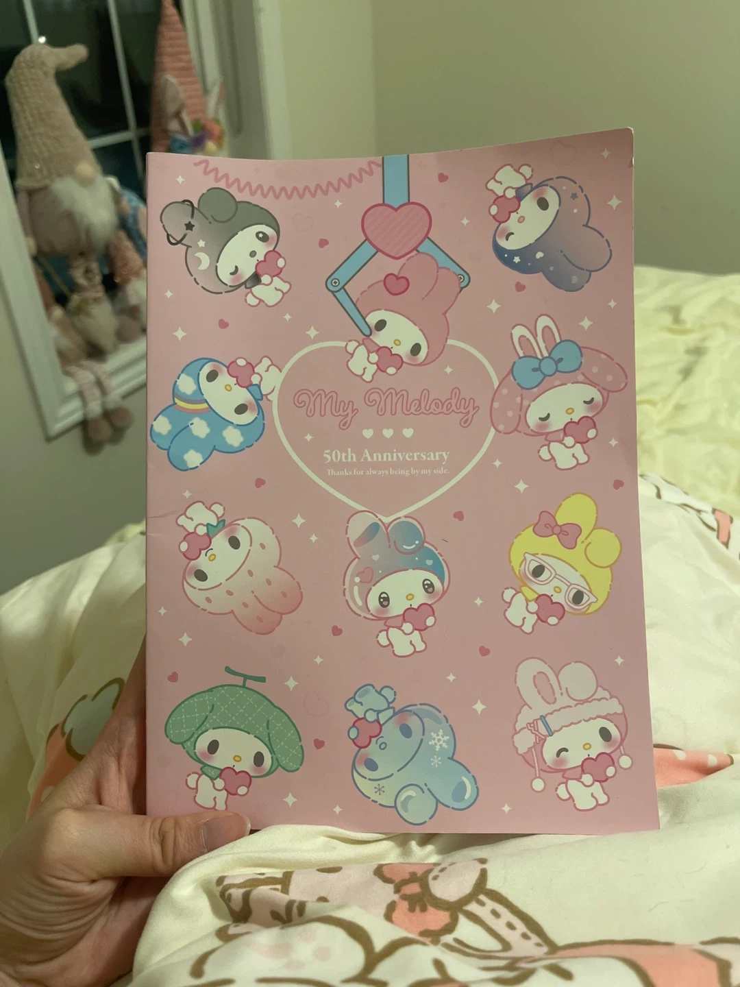 Selling a cute My Melody 50th Anniversary notebook! It features a pink cover with various My Melody designs. Perfect for taking notes or journaling