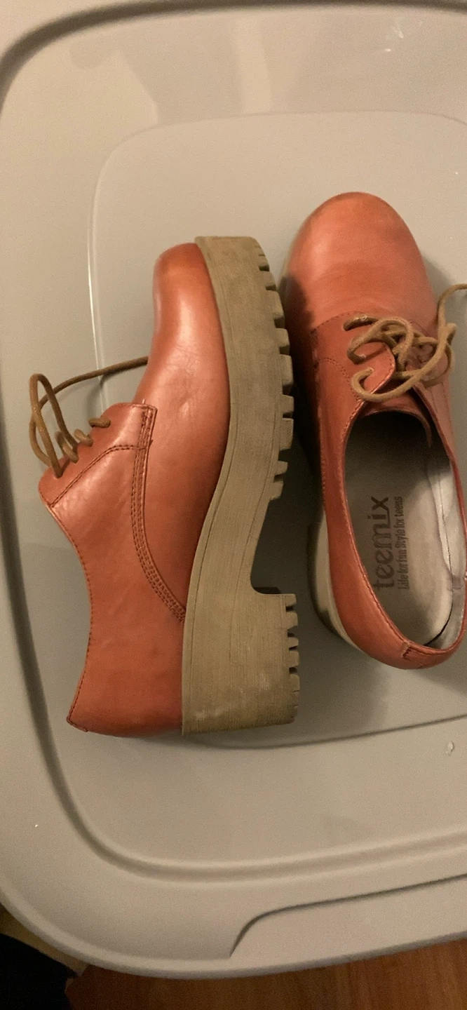 These Teemix platform shoes are perfect for adding a bit of height and style to your look! They are a size 6 and feature a unique platform sole. The shoes are in good condition.
