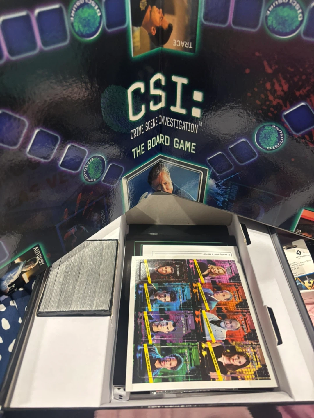 CSI: Crime Scene Investigation Board Game for ages 13 and up! Join Grissom's team, gather the evidence, and solve the crime. Includes Crime Scene Board, Crime Scene Cards, and more!