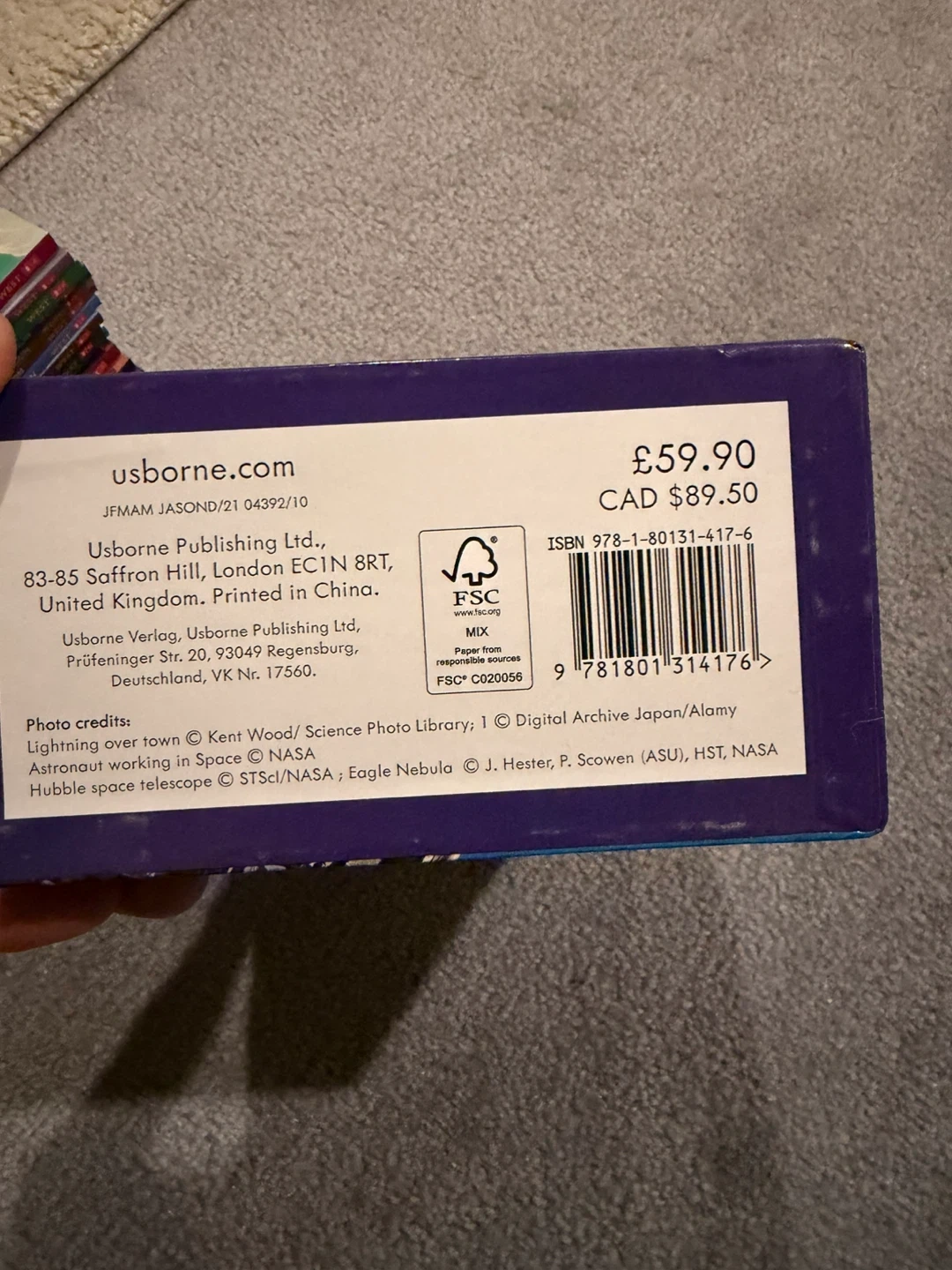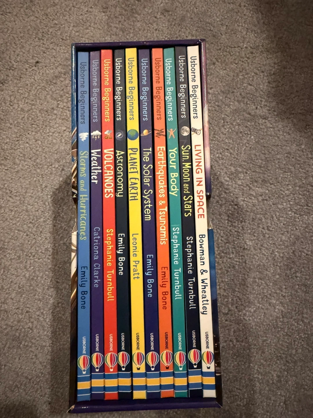 Selling a set of Usborne Beginners science books! Includes titles such as Living in Space, Sun Moon and Stars, Your Body, and more. Great for young, curious minds exploring the world around them. Originally bought for $89.50 CAD