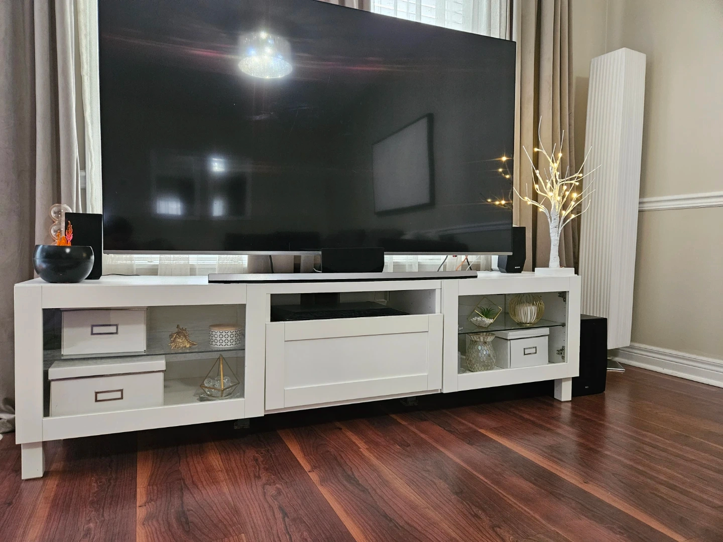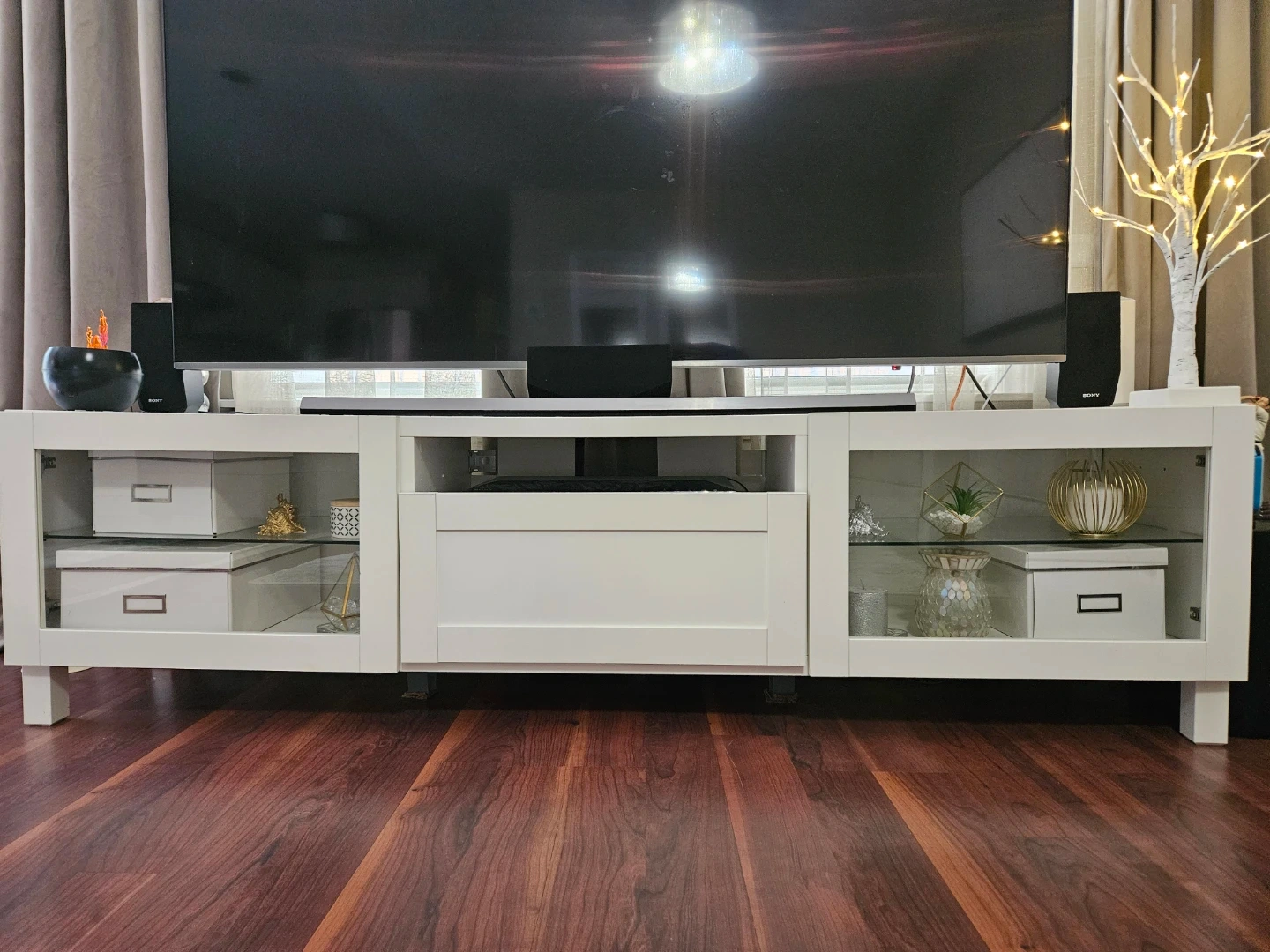 Selling an IKEA BESTA TV bench in white with clear glass. It's in Mint condition and ready for a new home!
