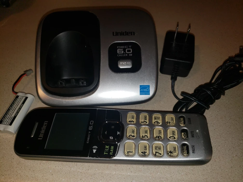 Selling a Uniden DECT 6.0 cordless phone. It comes with the base, handset, battery, and power adapter. Perfect for home or office use!