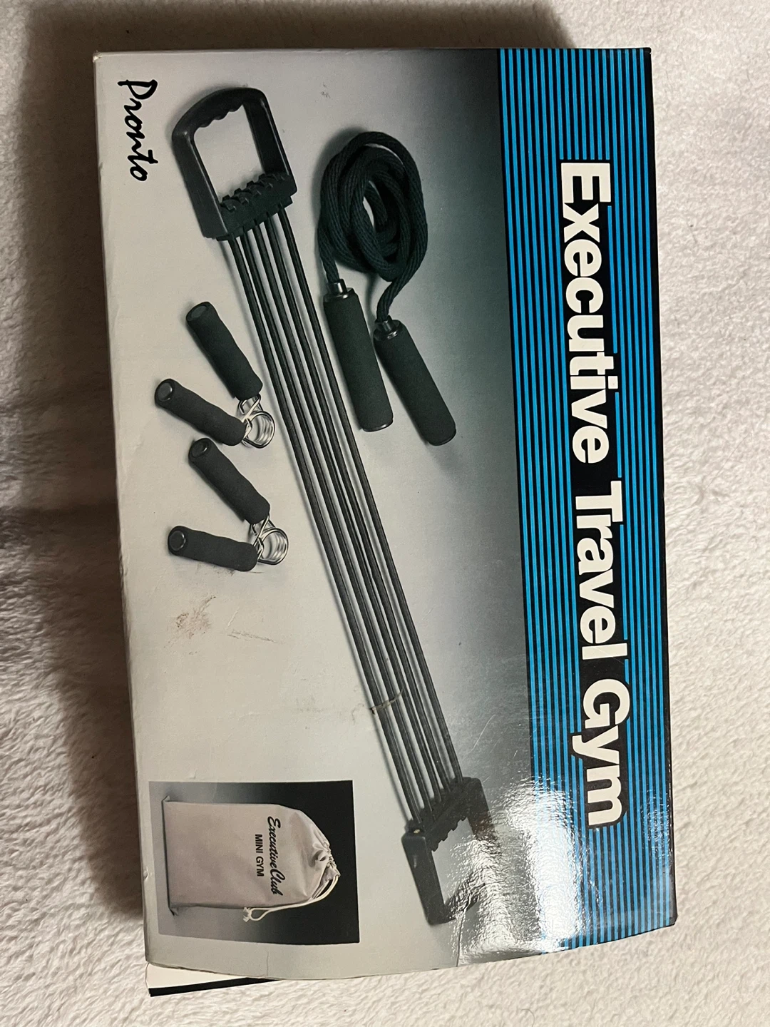 Selling a Pronto Executive Travel Gym! It's in great shape and ready for someone looking to stay fit on the go. Includes the resistance bands, jump rope, hand grips, and a mini gym bag to keep everything organized