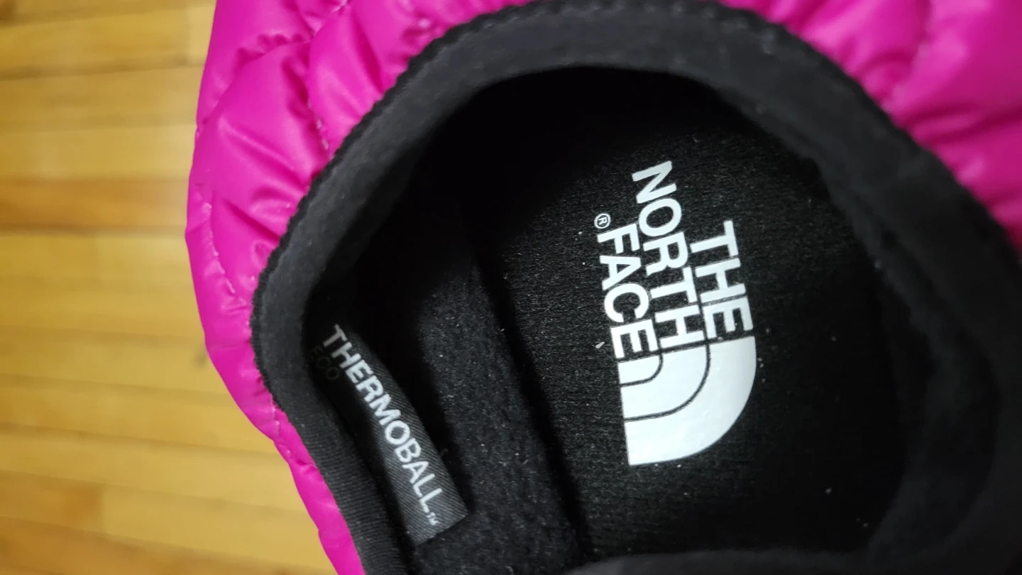 Selling a pair of The North Face Thermoball slippers in women's size XS. They are a vibrant pink color and in great condition. These slippers are perfect for keeping your feet warm and cozy!