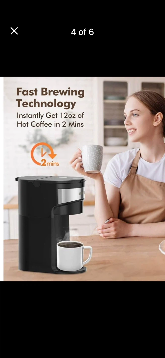 Selling a SIFENE 2-in-1 single serve coffee maker! It's compatible with K-pods and grounds, and features fast brewing and a compact design. It can brew 6-12oz of coffee. The brew basket has a stainless steel filter net. The parts are removable and dishwasher safe