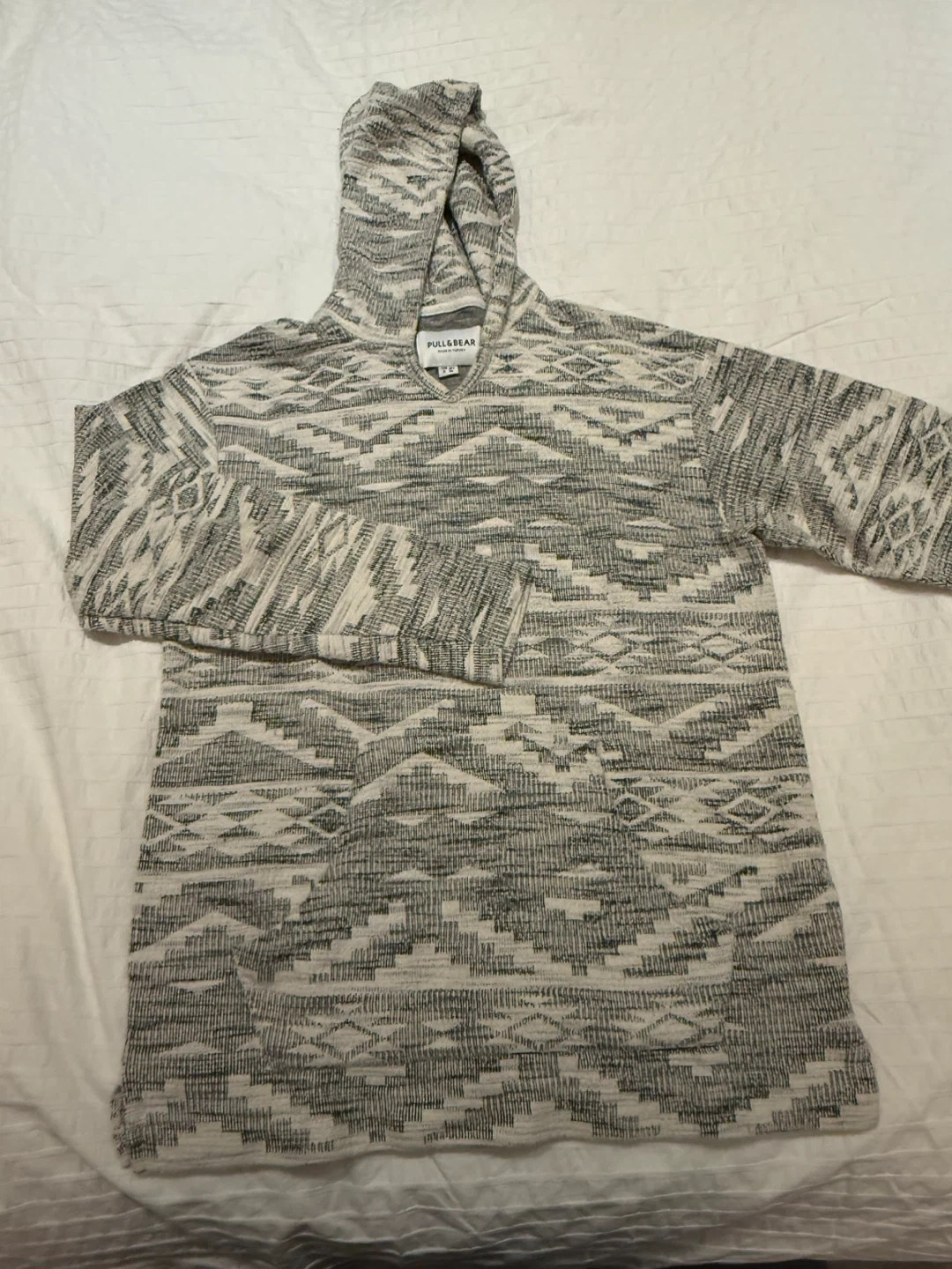 Selling a Pull&Bear hoodie in size S. It has a unique pattern and is made in Turkey. It is in good condition. Worn a couple of times only. Like new.