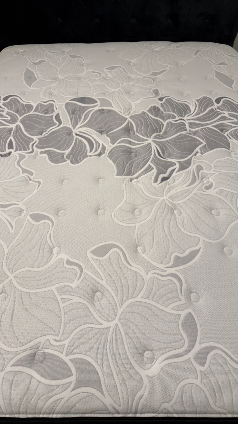 Selling a Sealy Proback Plus Posturepedic mattress. It features a floral design on the top surface. The mattress is clean and in great shape and ready for a new home. It comes with the mattress protector and boxspring. Selling as upgrading to a king size bed.