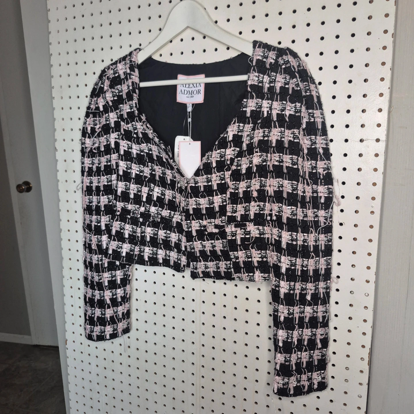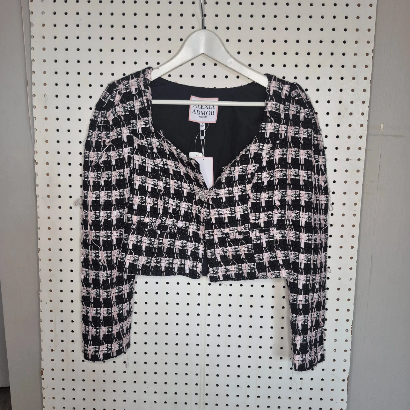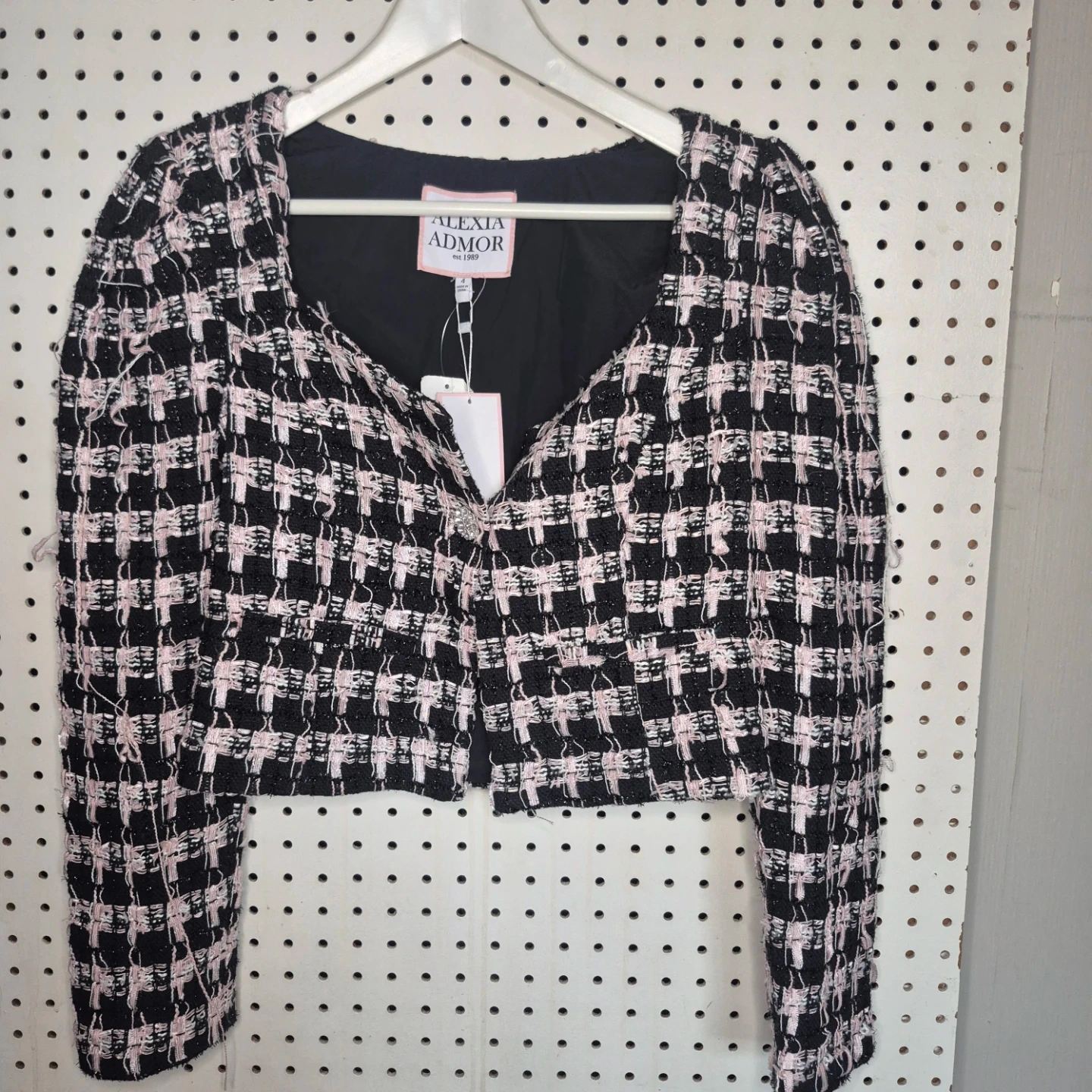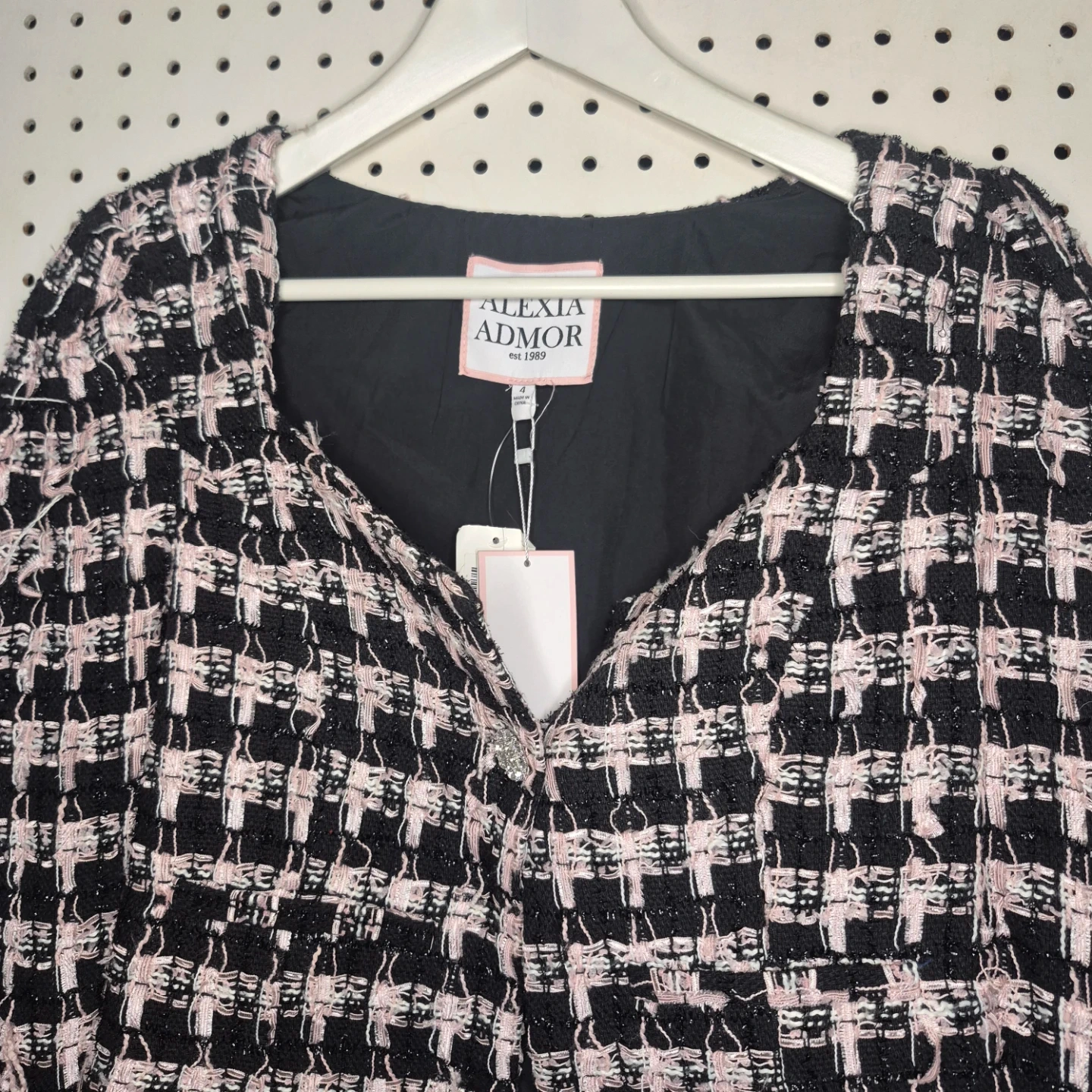 Selling an Alexia Admor cropped tweed jacket in a stylish black and pink colour combination! The jacket is a size 4 and has a style number of T618. Originally valued at $199.00, this is a steal!