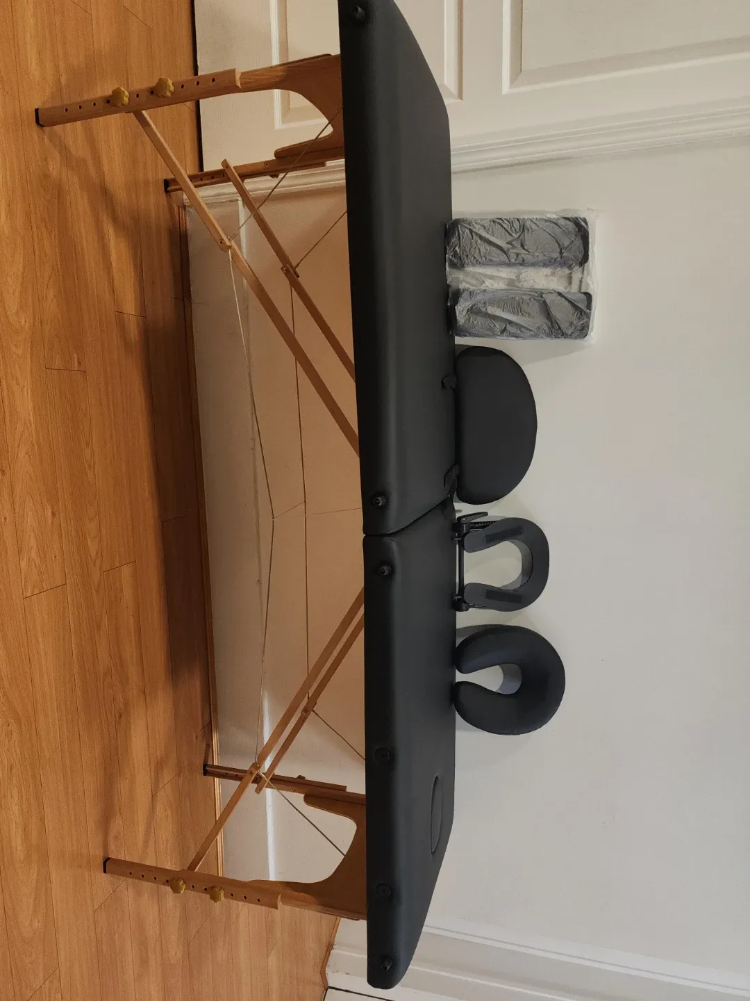 Selling a portable, foldable black massage table in almost brand-new condition. It comes with all the accessories and the carry bag shown in the picture, plus the original manual. Perfect for massage therapy or as a lash table—easy to set up, use, and store. Measures 72" long and 23" wide