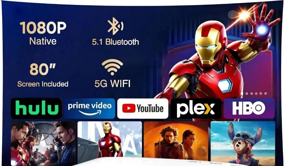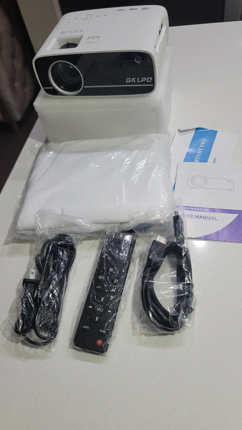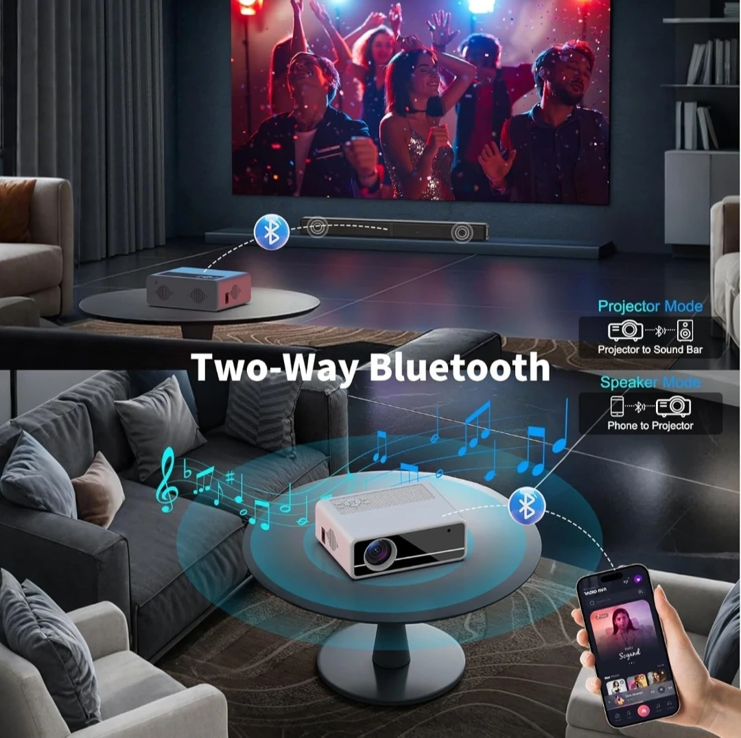 【Projector Screen Included】 4K Projector with WiFi 6 and Two-Way Bluetooth, Native 1080P Portable Outdoor Movie Projector with Electric Keystone, Mini Projector Compatible with HDMI, USB, Smartphone New never used in box Pick up in panatella square nw Calgary