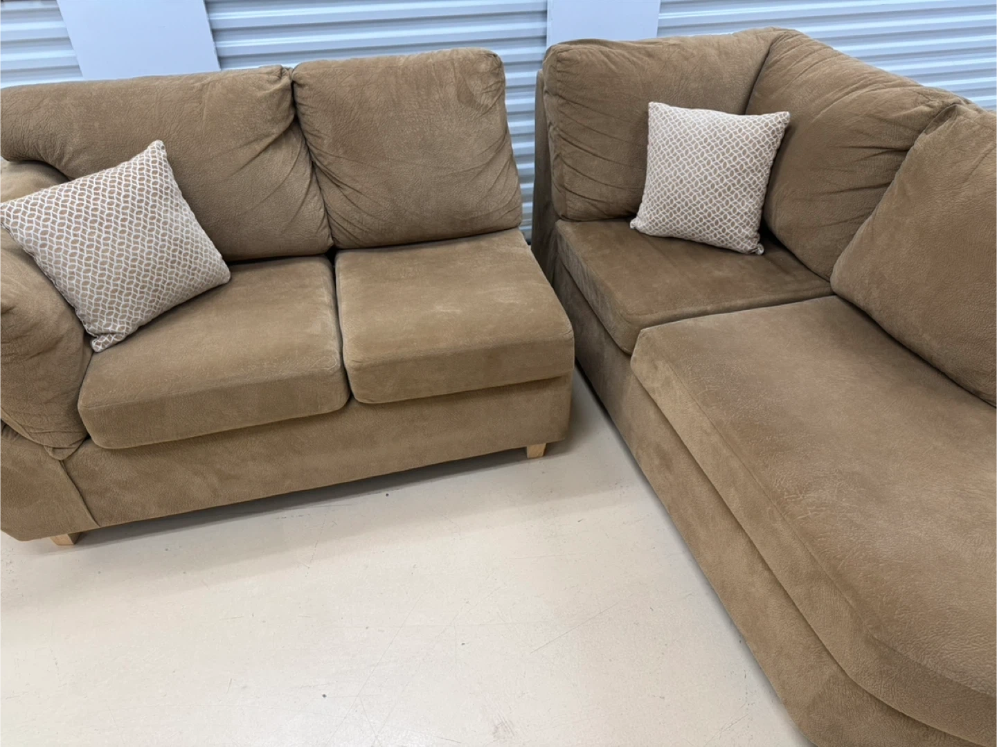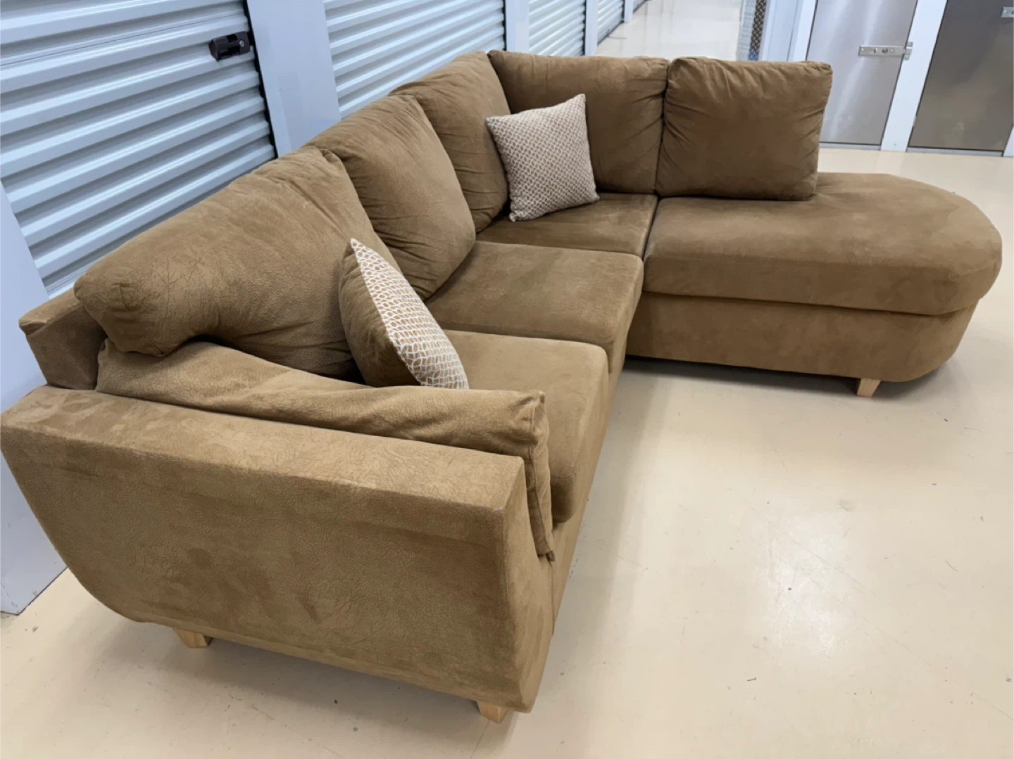 Selling a comfy brown sectional sofa with a chaise lounge! It's in good condition and would be a great addition to any living room. The cushions are soft and the chaise is perfect for relaxing. Ready for a new home! Home delivery available