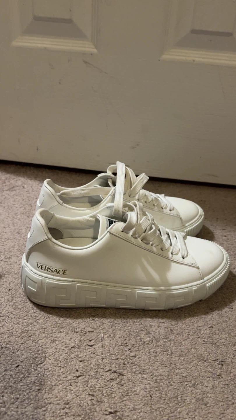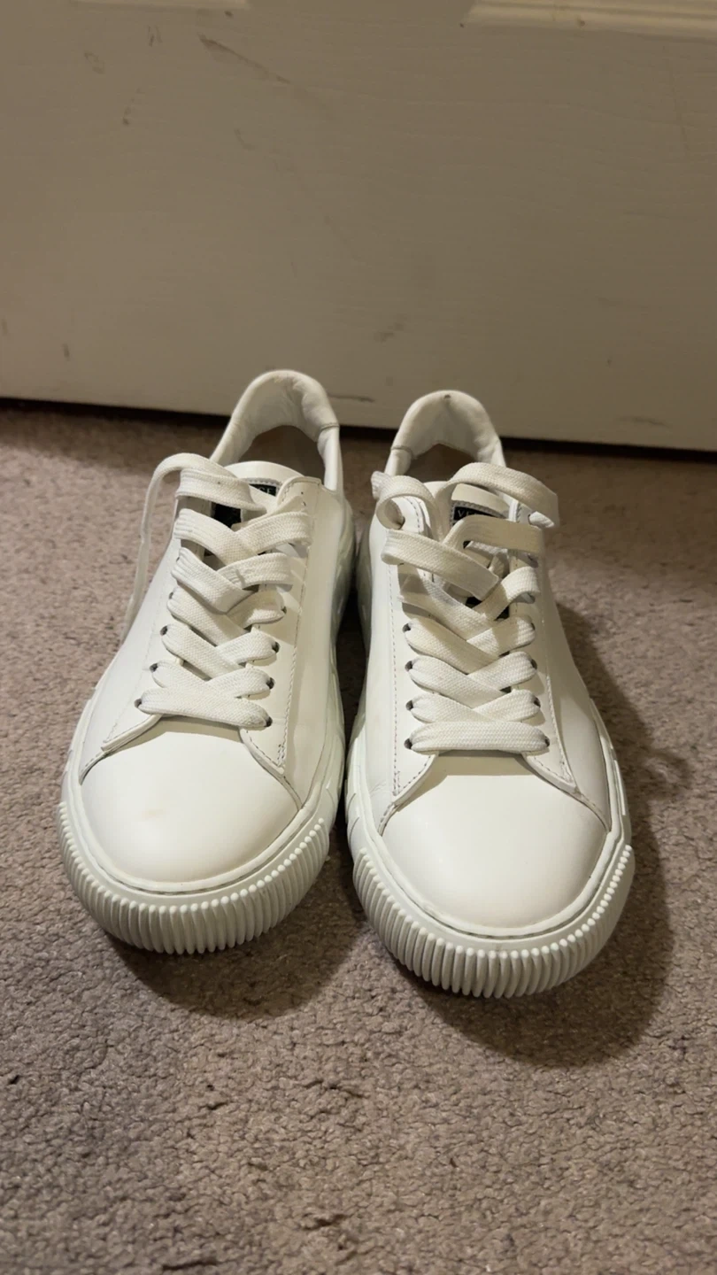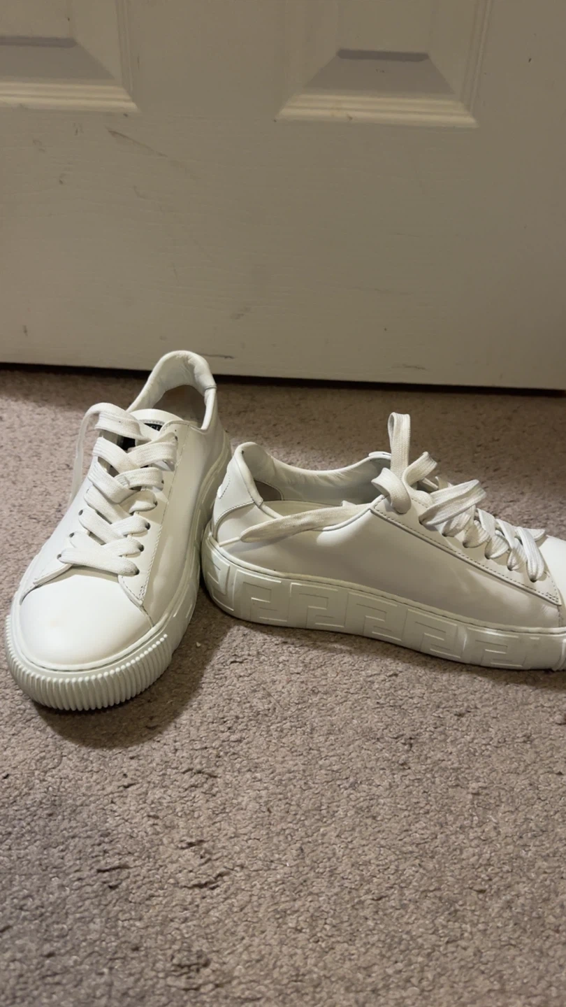 Selling a pair of Versace sneakers in all white leather. They have a unique design on the soles. Great for adding a touch of luxury to your everyday look! Comes with box and receipt. $130. Size 36.