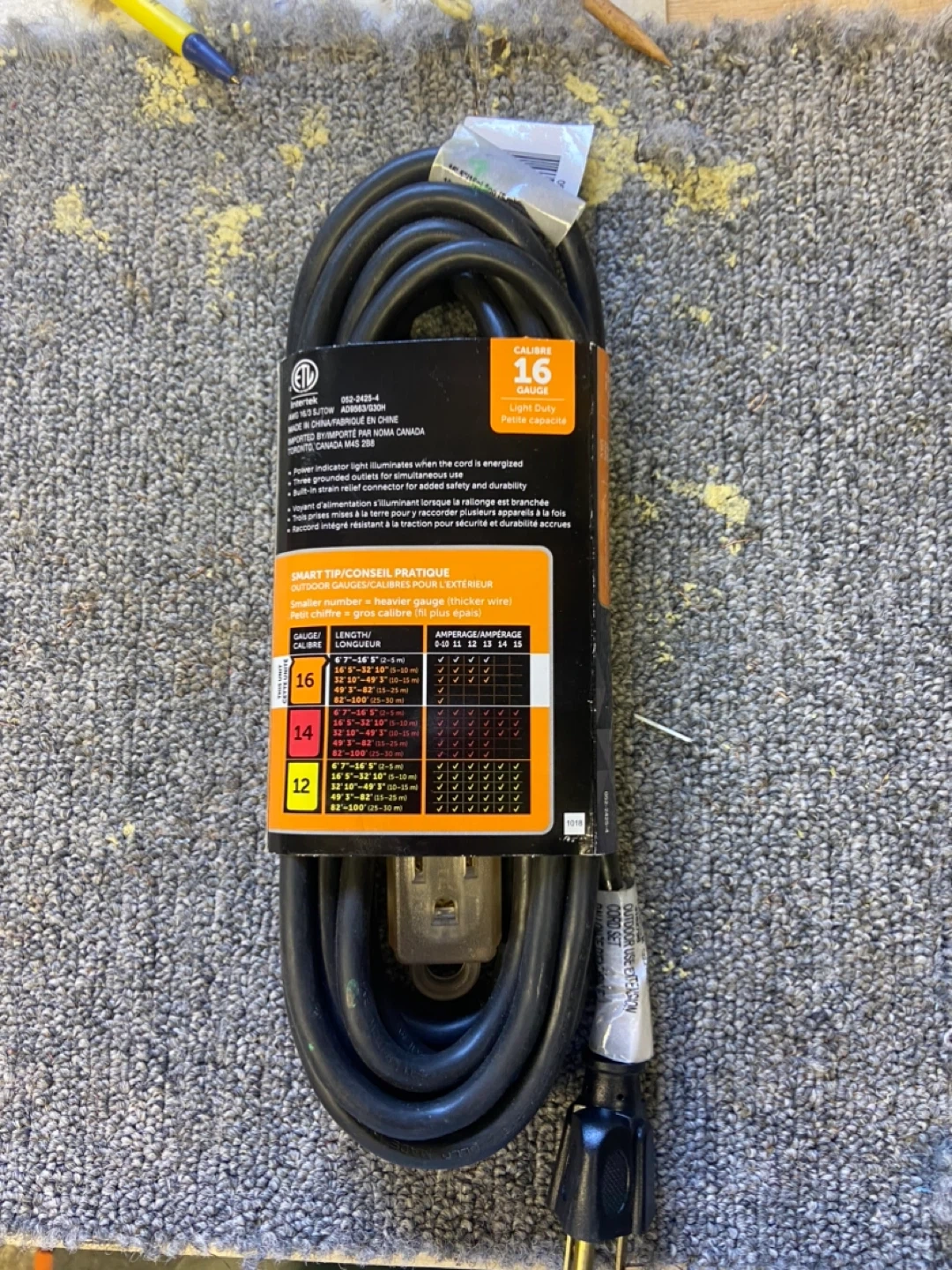 Selling a brand new Noma Cold Weather Extension Cord, perfect for outdoor use! It's 16' 5" long and designed to stay flexible even in cold temperatures. The cord also features a power indicator light so you can easily see when it's energized