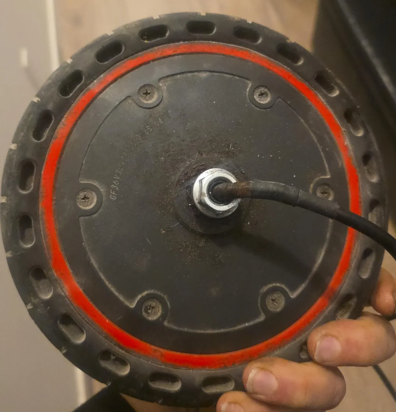 Selling an electric scooter wheel motor. Confirmed working when disconnected.