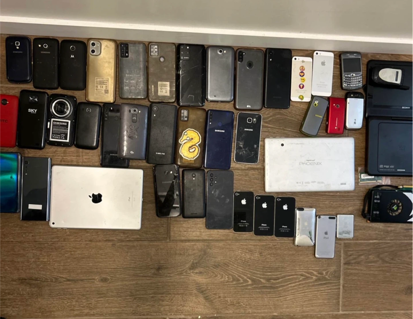 Selling a mixed lot of used 45 electronics, including smartphones, tablets, and laptops. These are ideal for parts or repair projects. Some work and most are damaged or locked.