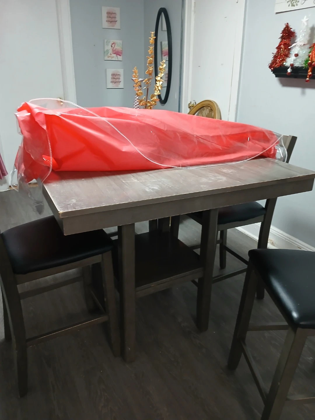Selling a mirrored ,dresser 5 chairs,and dinner table! It's in good condition and would be a beautiful addition to your home