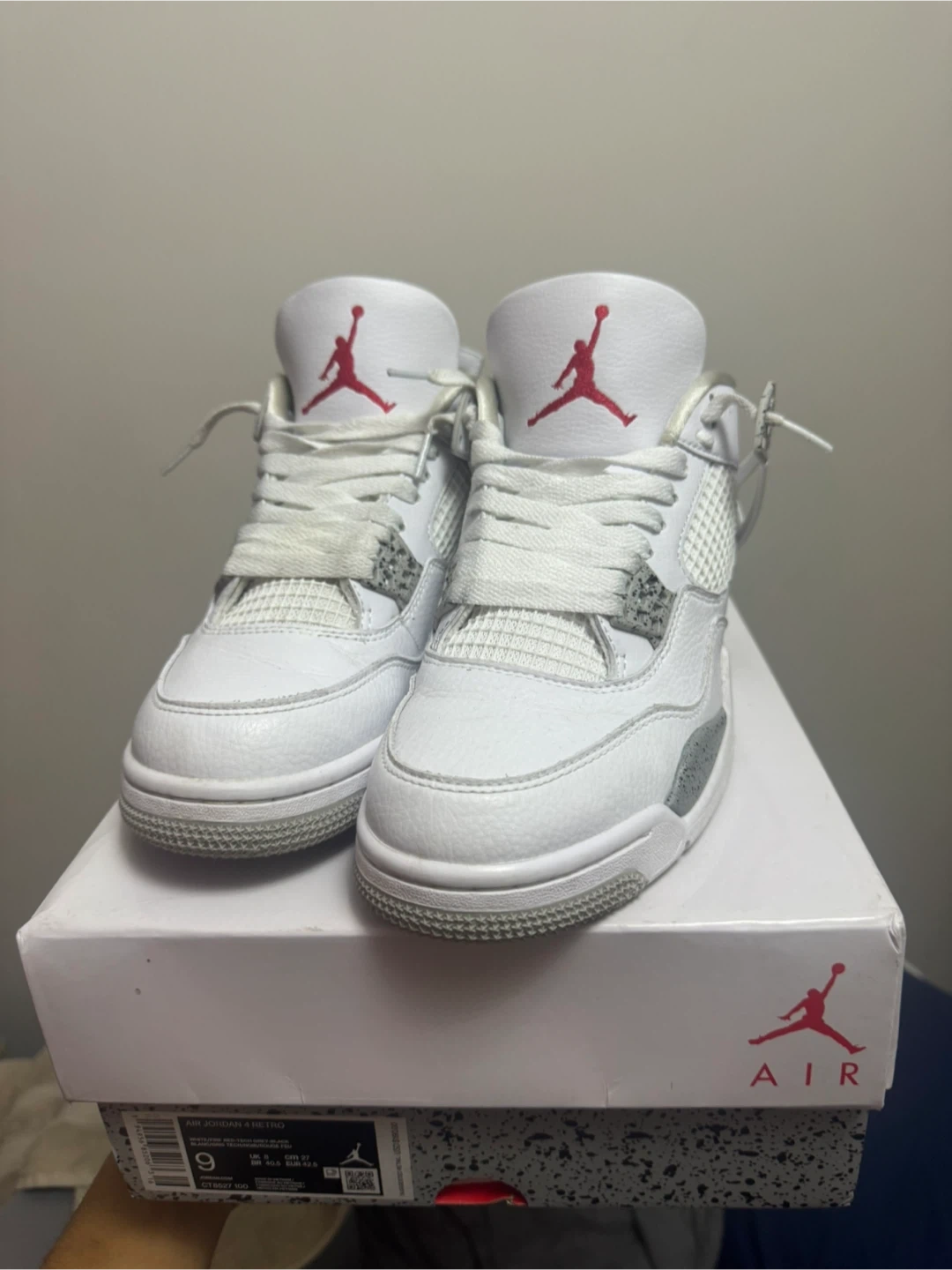 Selling a pair of Air Jordan 4 Retro in the White Oreo colourway! These are a size 9 and come with the original box. They're in great condition, ready for a new owner!