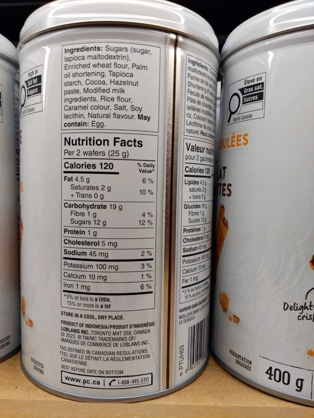 Enjoy these President's Choice Chocolate Hazelnut Flavour Rolled Wafers! They are delightfully crispy and come in a 400g tin