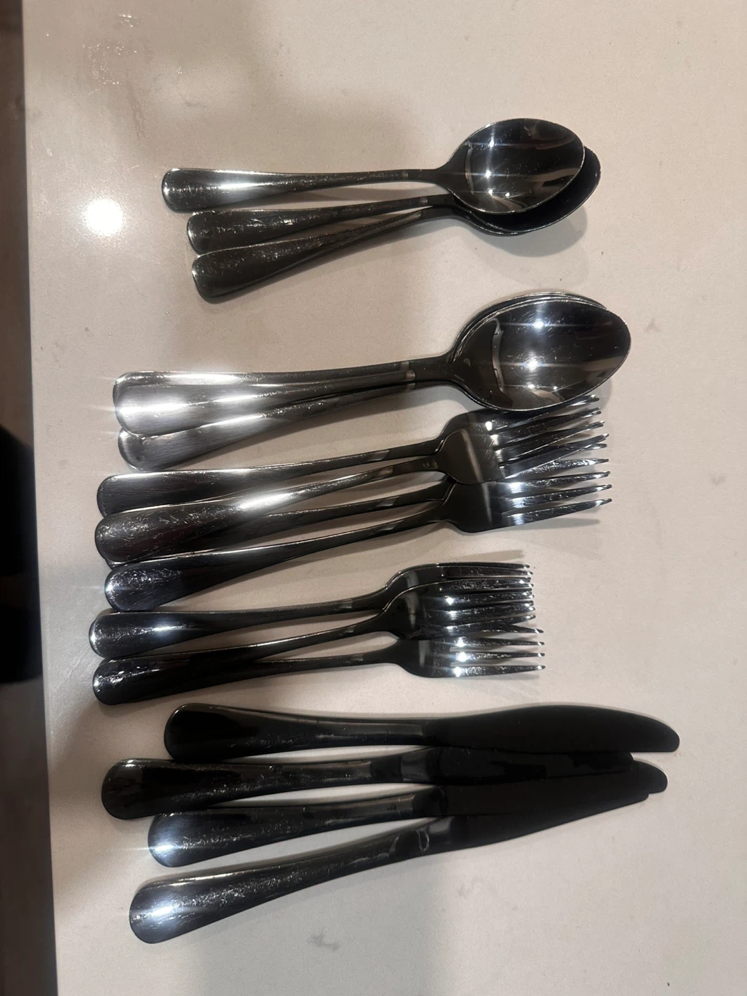 Selling a set of stainless steel cutlery! Includes spoons, forks, and knives. Perfect for everyday use or for setting a nice table. They're in good condition.