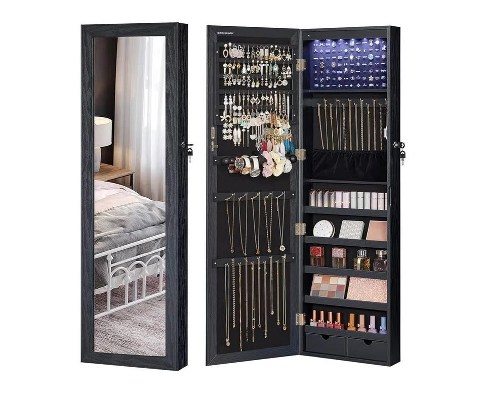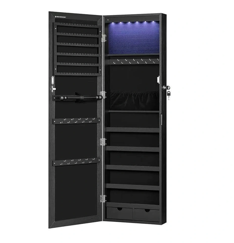 Elegant, secure, and incredibly functional β this SONGMICS LED mirror jewelry cabinet is the perfect all-in-one solution for organizing jewelry while saving space. A full-length mirror with built-in LED lights, lockable door, and smart interior layout make it ideal for everyday use.